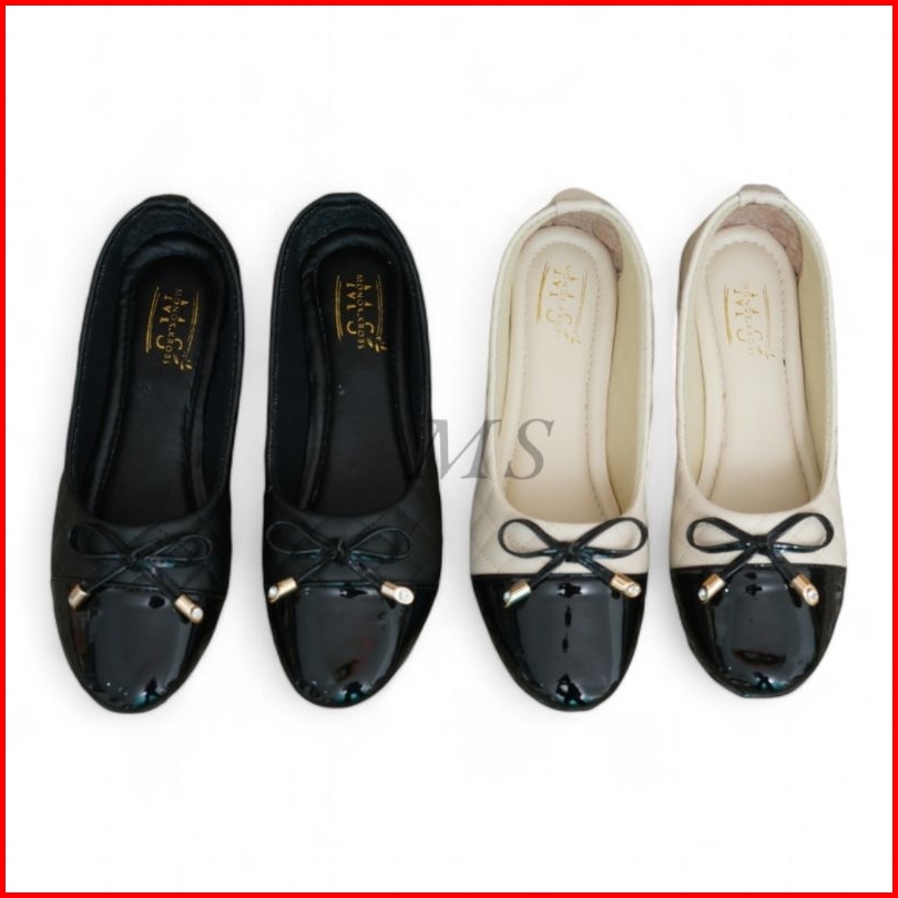 Ms Flatshoes Wanita Sepatu Balet Wanita Slip On Empuk Motif Pita Tyra Flat Shoes
