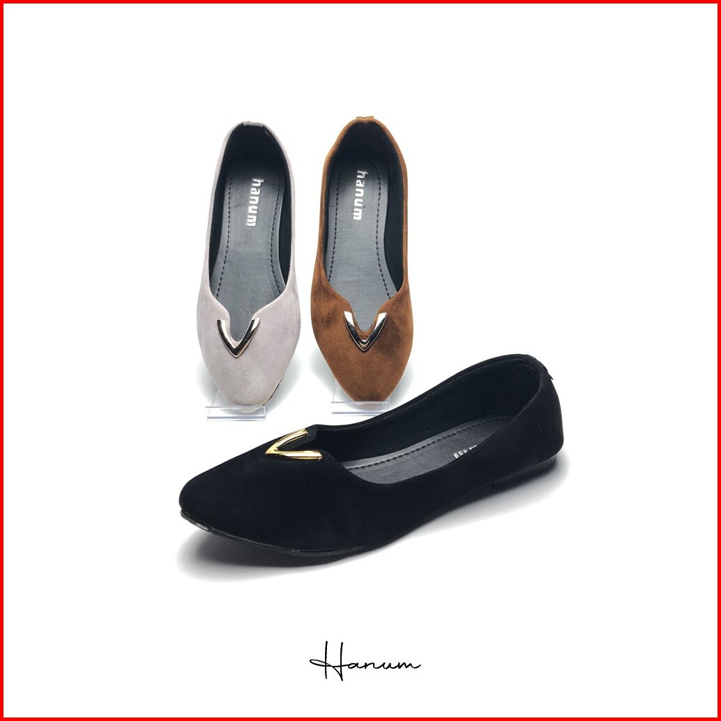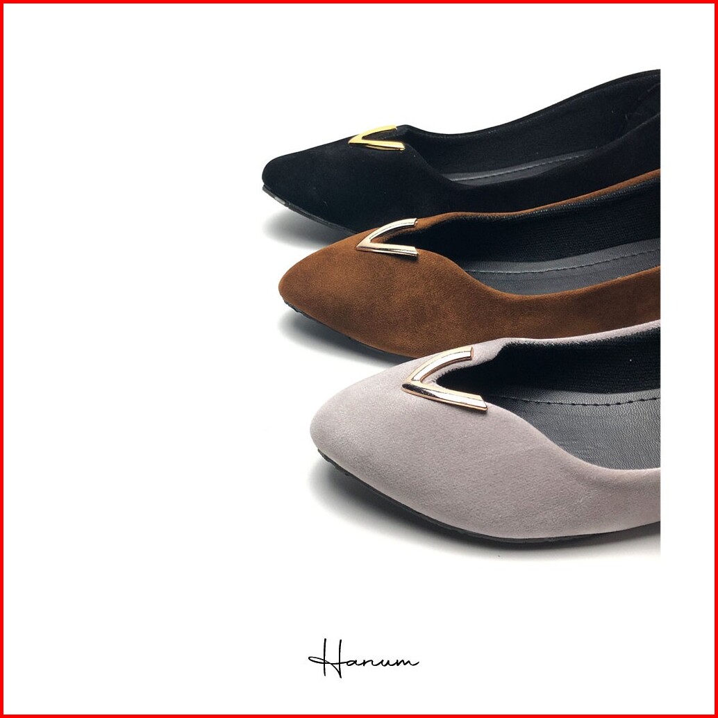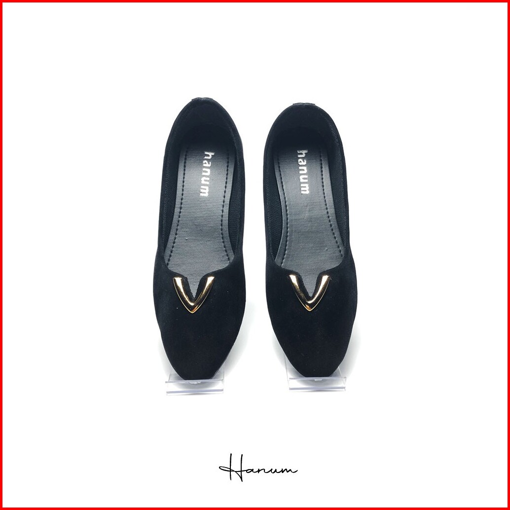 Hanum - Sepatu Wanita Flatshoes Balet Hanum Hf07 Suede Bludru Hitam