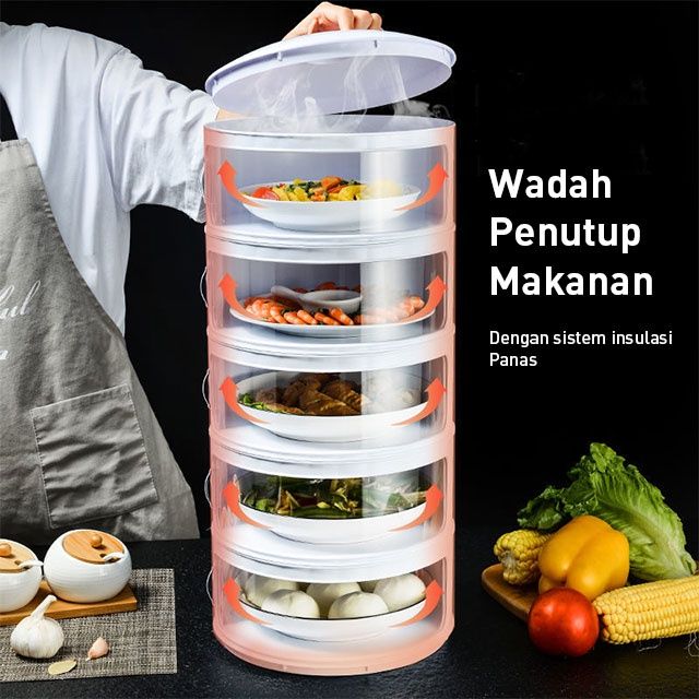 BARU CL - [5 SUSUN] TUDUNG SAJI MULTI STORAGE 5 SUSUN WARNA WARNI / FOOD COVER RAK MAKANAN / TEMPAT MAKANAN