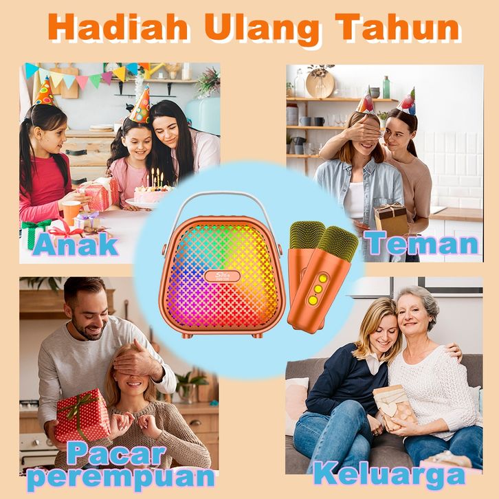 【PRO MAX BASS】Speaker Bluetooth Karaoke Super Bass 2 mic Portable Mini Advance MP3 Player Music Box Cute Anak-Anak Hadia