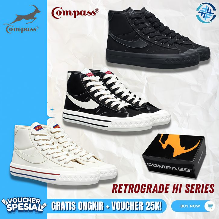 [Star] ORIGINAL Sepatu Compass Retrograde Hi Decon – Black White / Triple Black / Cream Sepatu Casual Pria Wanita Unisex