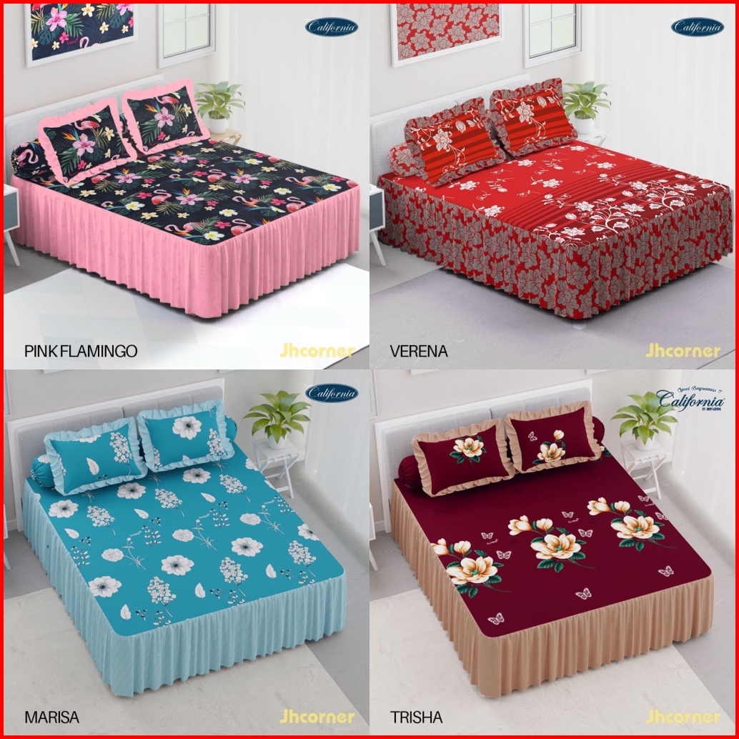 Sprei California Rumbai Ukuran 180x200cm King Size 6kaki Bed No 1 Motif Bunga Terlaris
