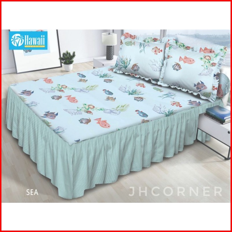 Sprei Hawaii Rumbai Rimple Ukuran 180x200cm King Size 6 Kaki Motif Terbaru Dan Terlaris