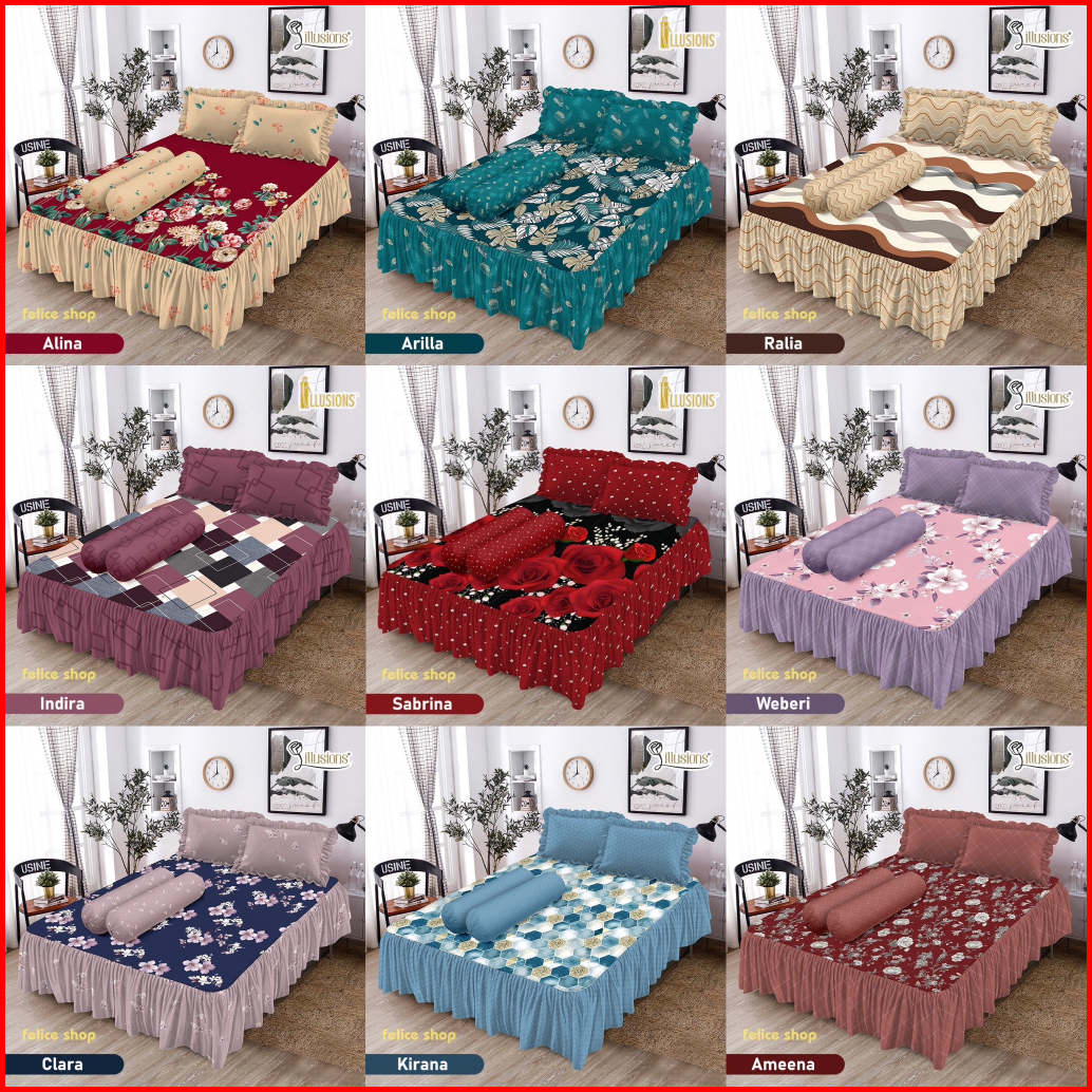 Sprei Illusions Rimple Rumbai Ukuran 180x200cm 6kaki King Size Motif Terbaru Dan Cantik Bestseller