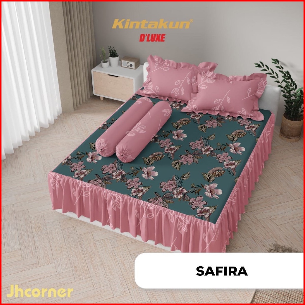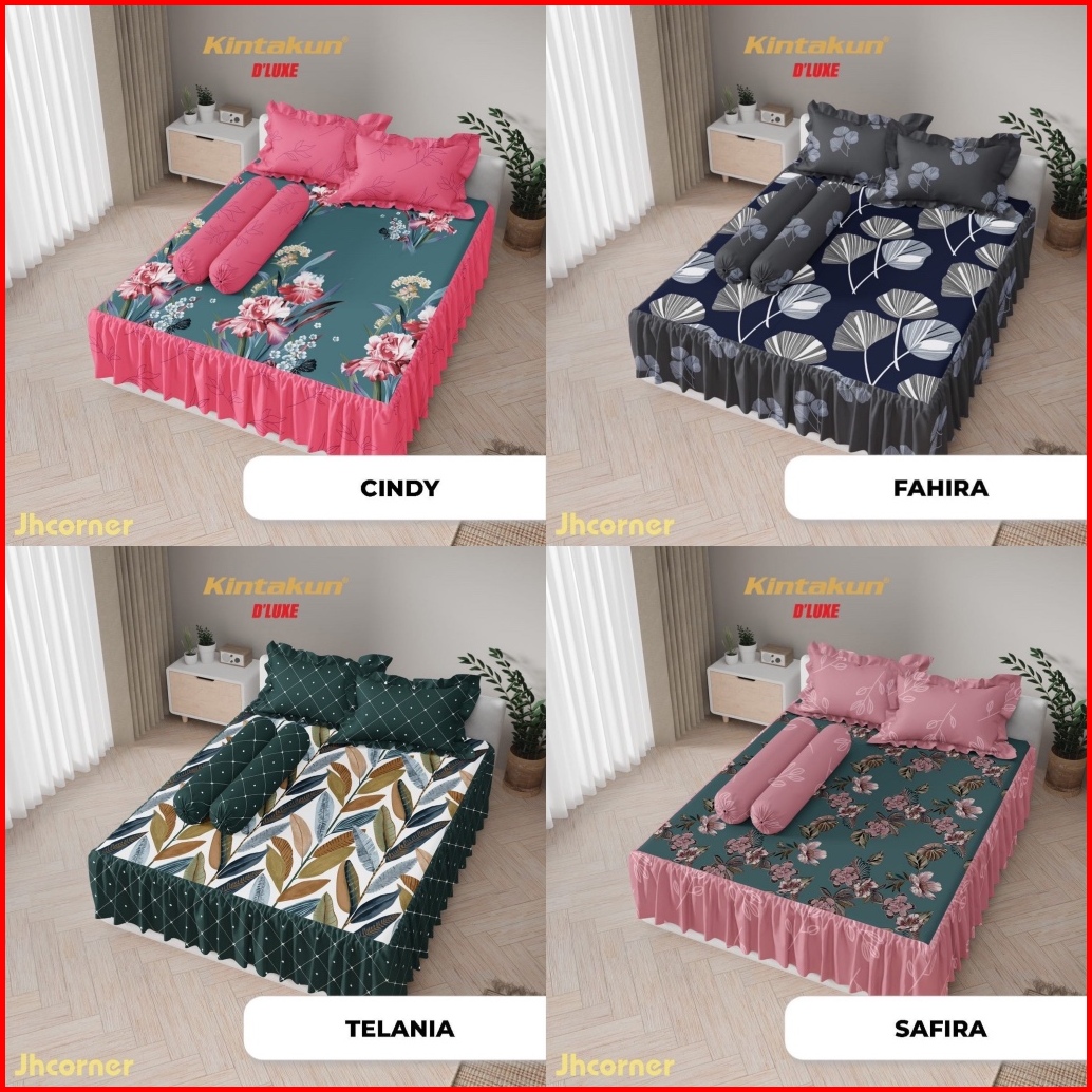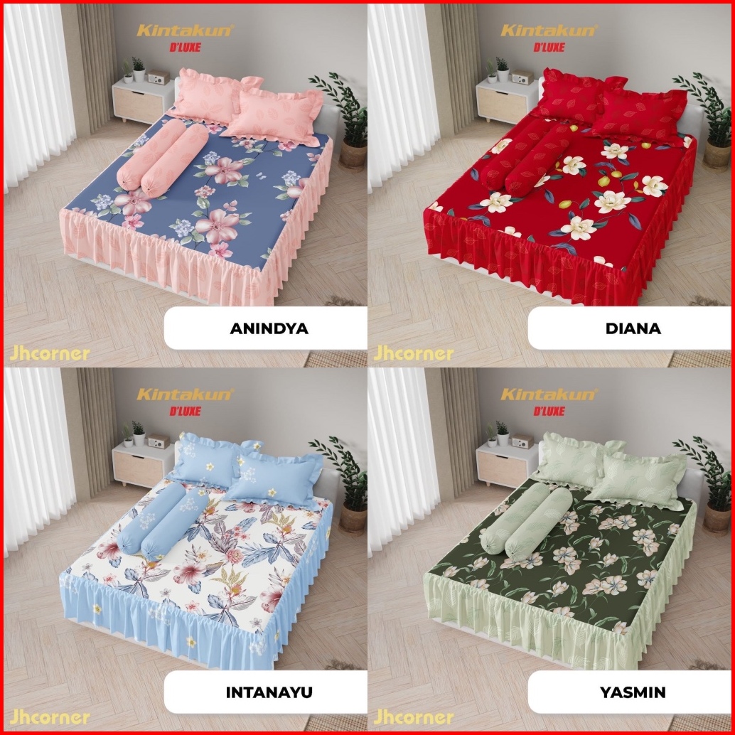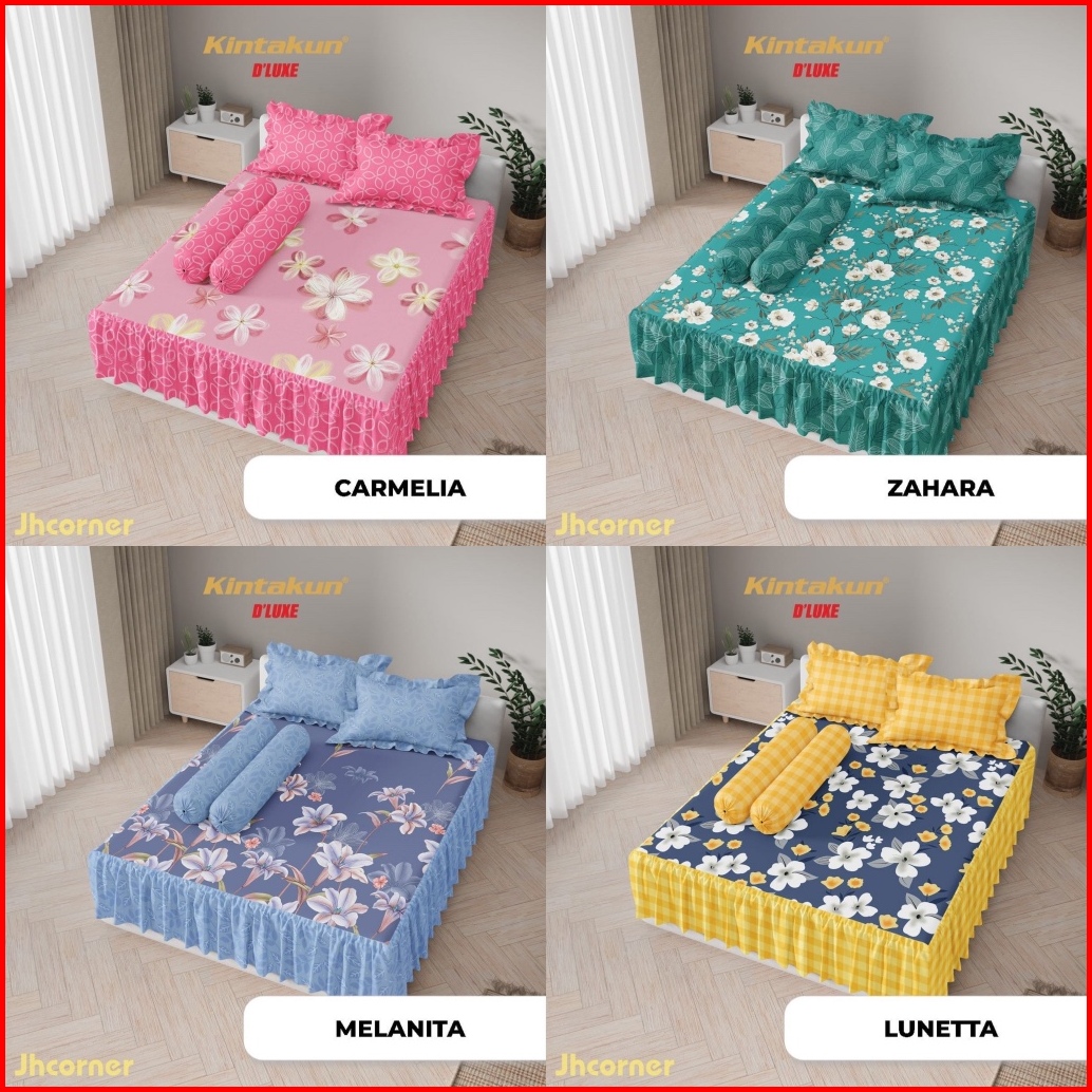 Sprei Kintakun Dluxe Rumbai Ukuran 180x200cm 6 Kaki King Size Tinggi Sprei 25cm Motif Bunga Terbaru Terlaris