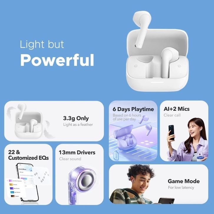 Soundcore K20i Earbuds Bluetooth 5.3 Earphones 36 PlayTime Bluetooth 13mm Drivers Game Mode TWS - A3994