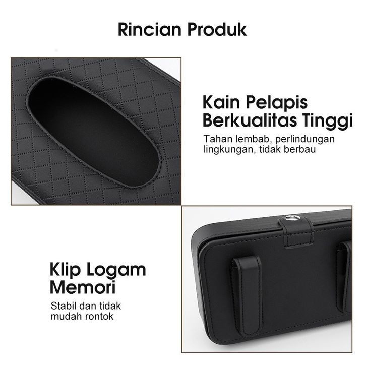 Tempat Tisu Mobil Gantung Kotak Tissue Kulit Mobil Mewah Car Visor Box Kotak Tissue Mobil SEAMETAL