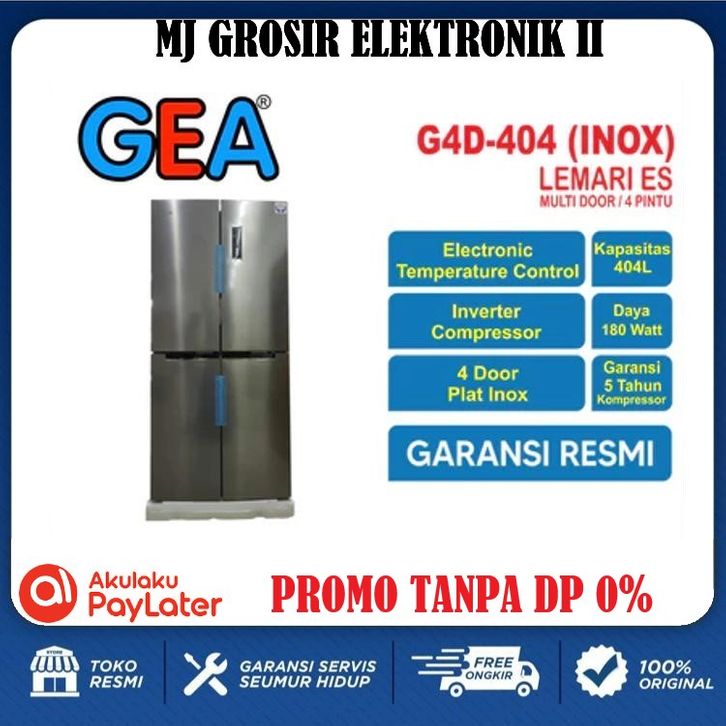 GRATIS ONGKIR KULKAS GEA G4D 404 LEMARI ES SIDE BY SIDE G4D-404 4 PINTU SILVER (INOX) GARANSI RESMI