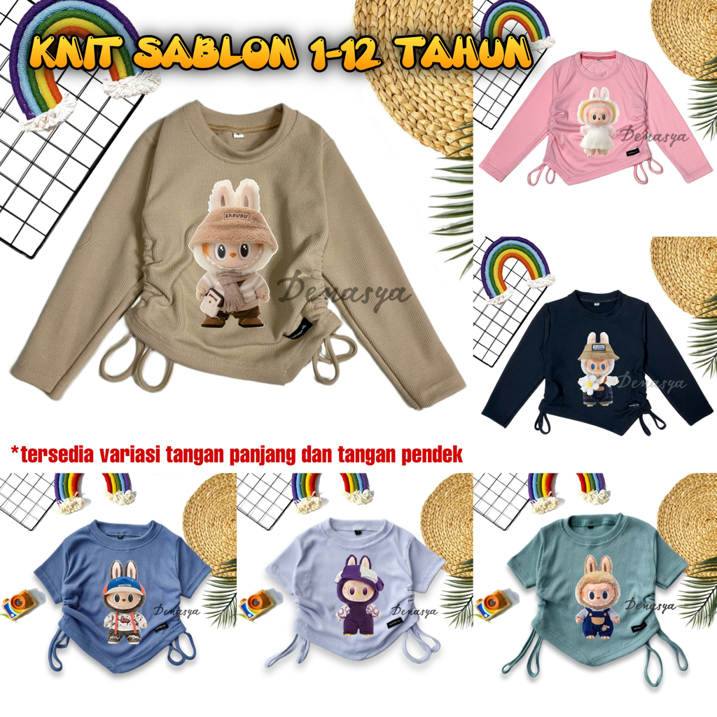 ATASAN KNIT ANAK PEREMPUAN TERBARU / KAOS LABUBU KNIT SERUT CROP T0P / BAJU RAJUT ANAK 1-12 TAHUN MOTIF SABLON KEKINIAN