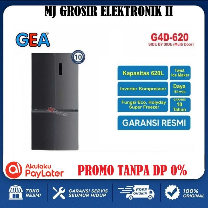 GRATIS ONGKIR KULKAS GEA G4D 620 LEMARI ES 4 PINTU G4D-620 4 PINTU MATT GREY GARANSI RESMI