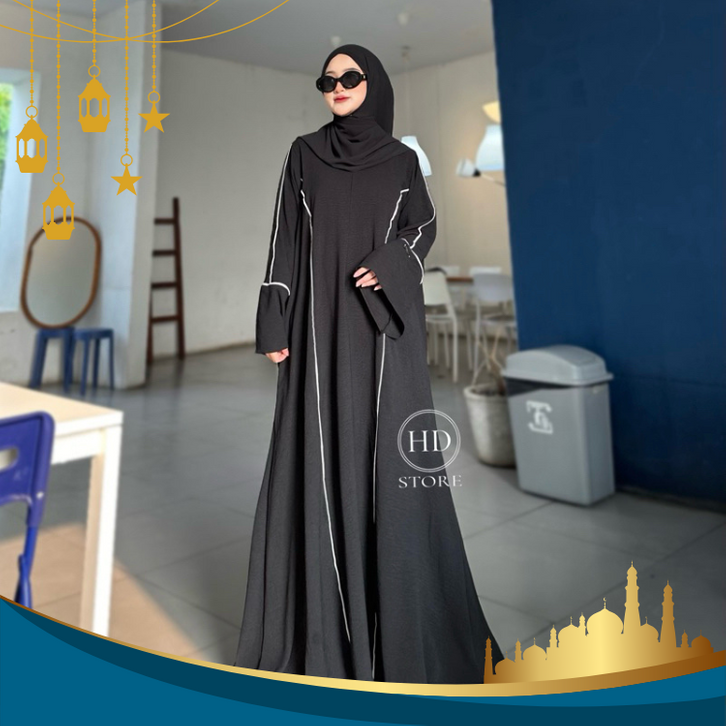 GAMIS LEBARAN 2025 Gamis Abaya Mecca Dress Wanita Muslim Premium Abaya Umroh List ban Hitam Gamis Mewah