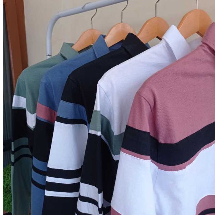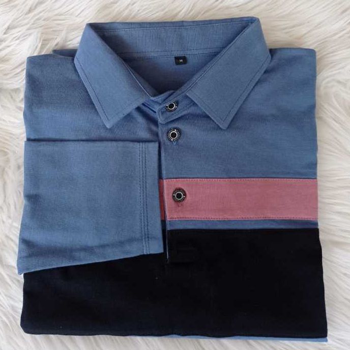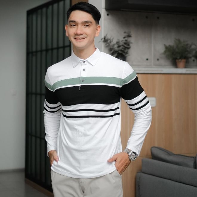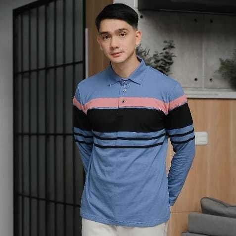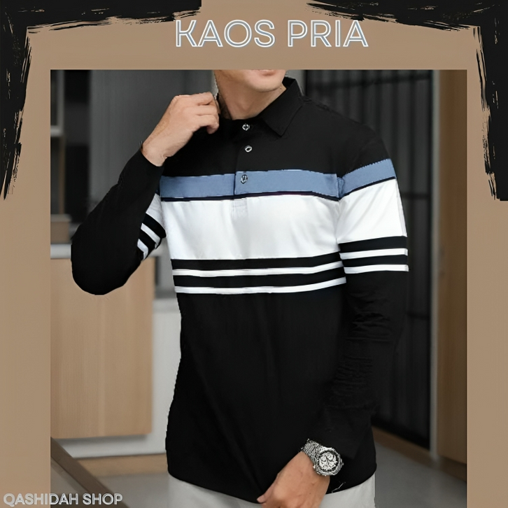 Kaos Pria Polo Lengan Panjang Kasual Tshirt Motif Kombinasi Bahan Cotton Combad 24s Premium Kaos Cowok