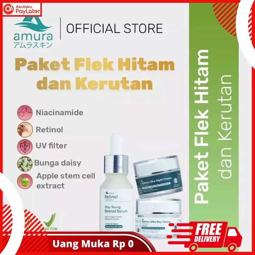 Skincare Amura Paket 3 in 1 Retinol Stay Young Serum Dan Cream Amura Siang Malam