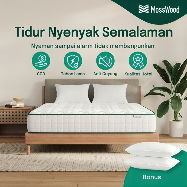 Mosswood Springbed Hotel Premium 20cm Kasur Busa Pegas Anti Goyang Tahan Lama Bonus Bantal Gratis Ongkir