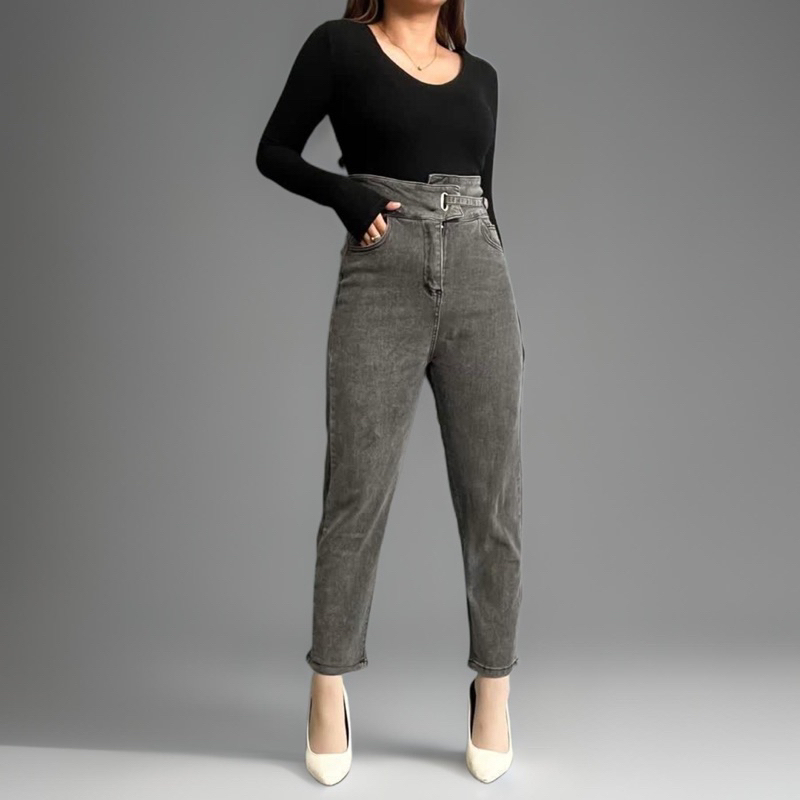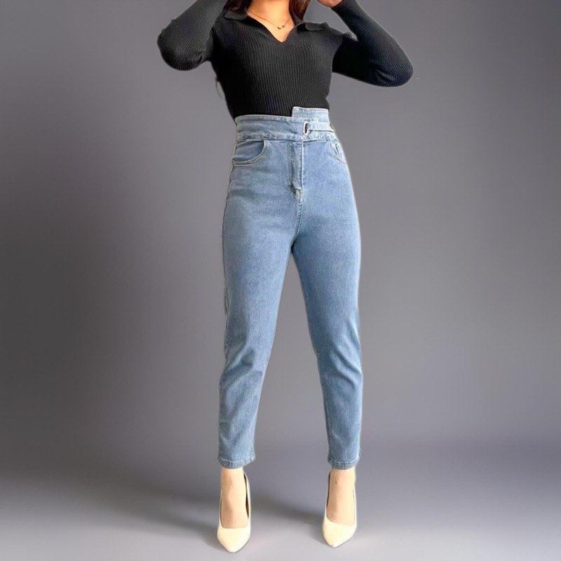 (Gratis Ongkir) Thirteen - Celana Panjang Jeans Highwaist Wanita Boyfriend Jeans Baggy Jeans Straight Jeans Wanita Murah