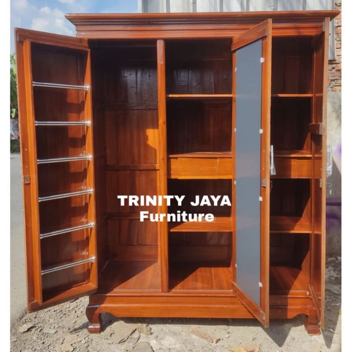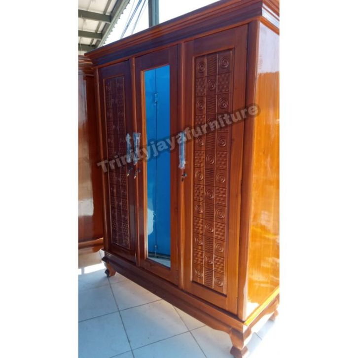 LEMARI KAYU 3 PINTU JATI Lemari Pakaian Rak Hijab 3 Pintu Kayu Jati Termurah