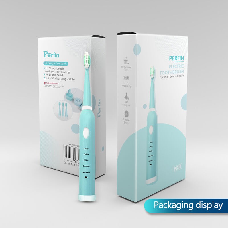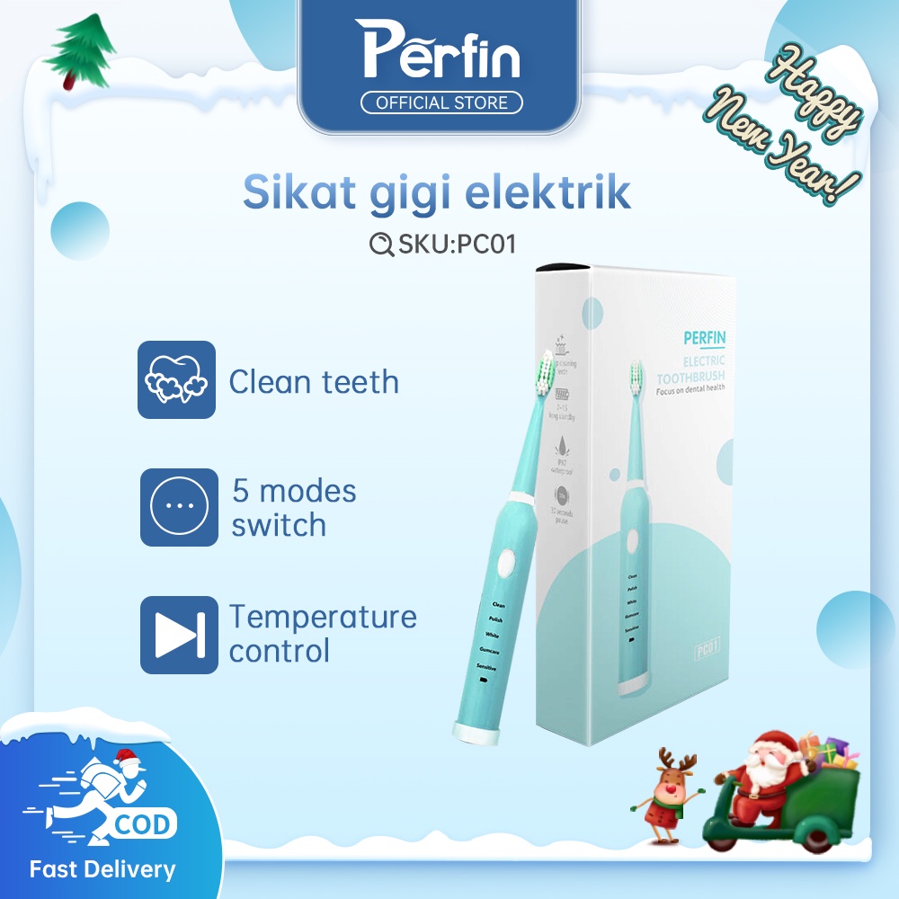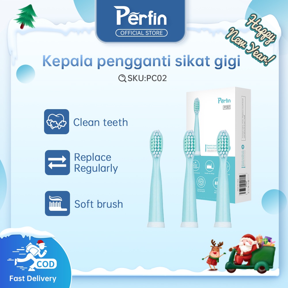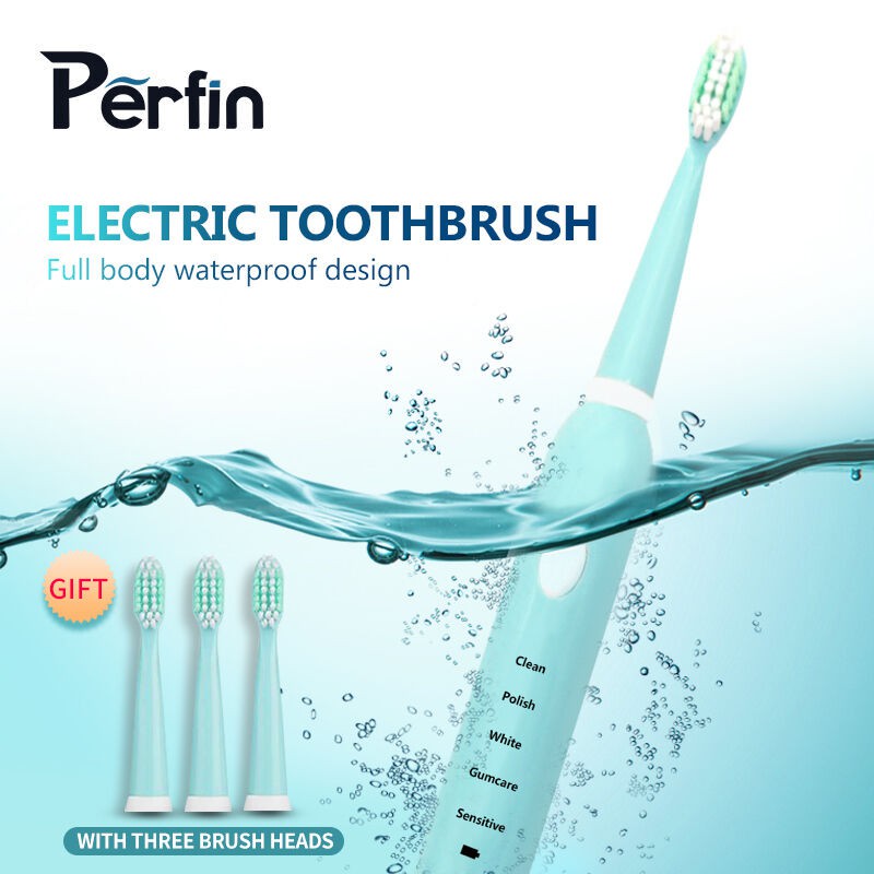 Perfin PC01-PC02 Anak Dewasa Universal Sikat Gigi Listrik Isi Ulang Mendapatkan 3 Kepala Sikat Gigi NEW