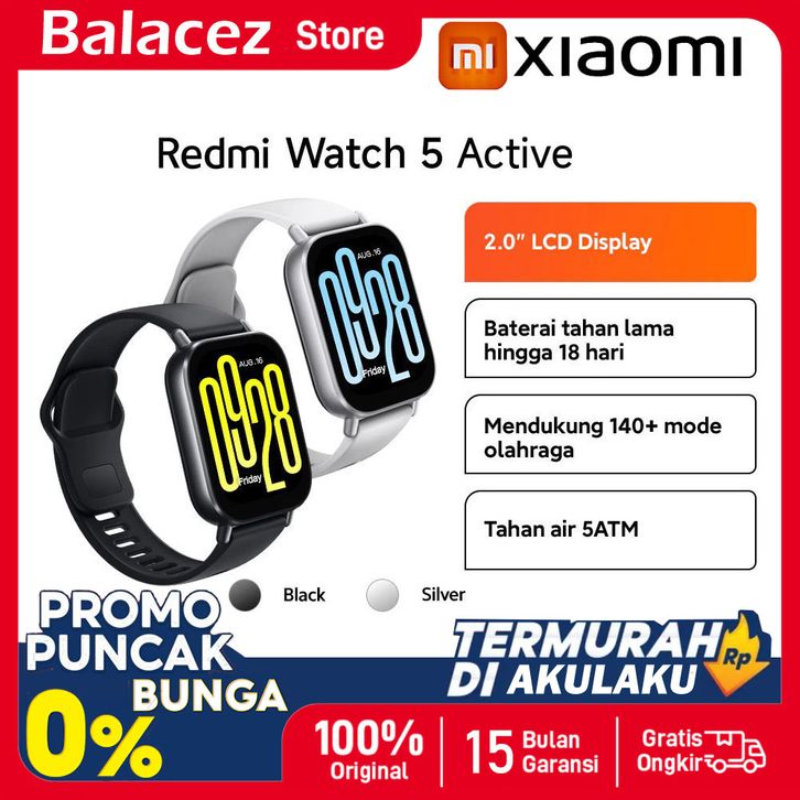 Xiaomi Redmi Watch 5 Active | 2.0" LCD Display | Mendukung 140+ mode olahraga | Tahan air 5ATM - GARANSI RESMI 1 TAHUN