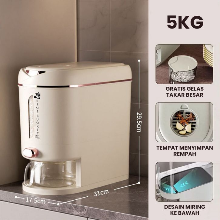 Dispenser Beras Otomatis 5-10KG E29-E31 Tempat Penyimpanan Beras Food Grade Anti Kutu