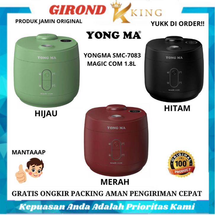 Magic Com Manual 1.8 Liter 400 Watt - YONG MA SMC 7083R Merah & Hijau & Hitam / Jamin Bagus / Produk Terbaru