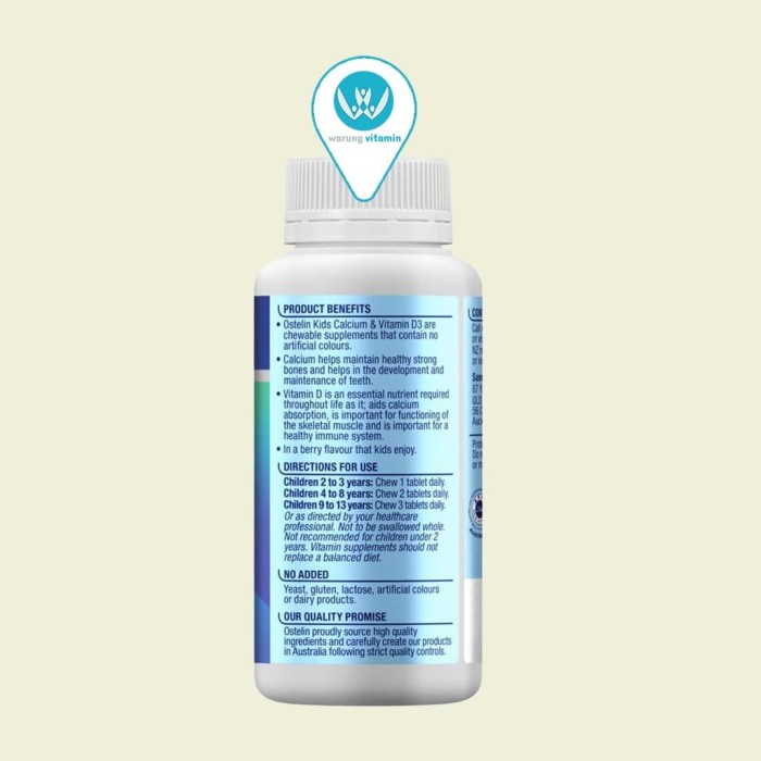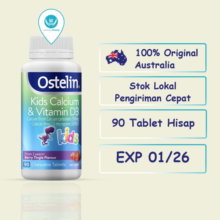 OSTELIN KIDS CALCIUM & VITAMIN D3 90 TABLET KUNYAH ORI AUSTRALIA