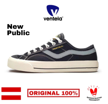 SEPATU VENTELA NEW PUBLIC LOW BLACK NATURAL SNEAKER CASUAL WANITA KEKINIAN ORIGINAL
