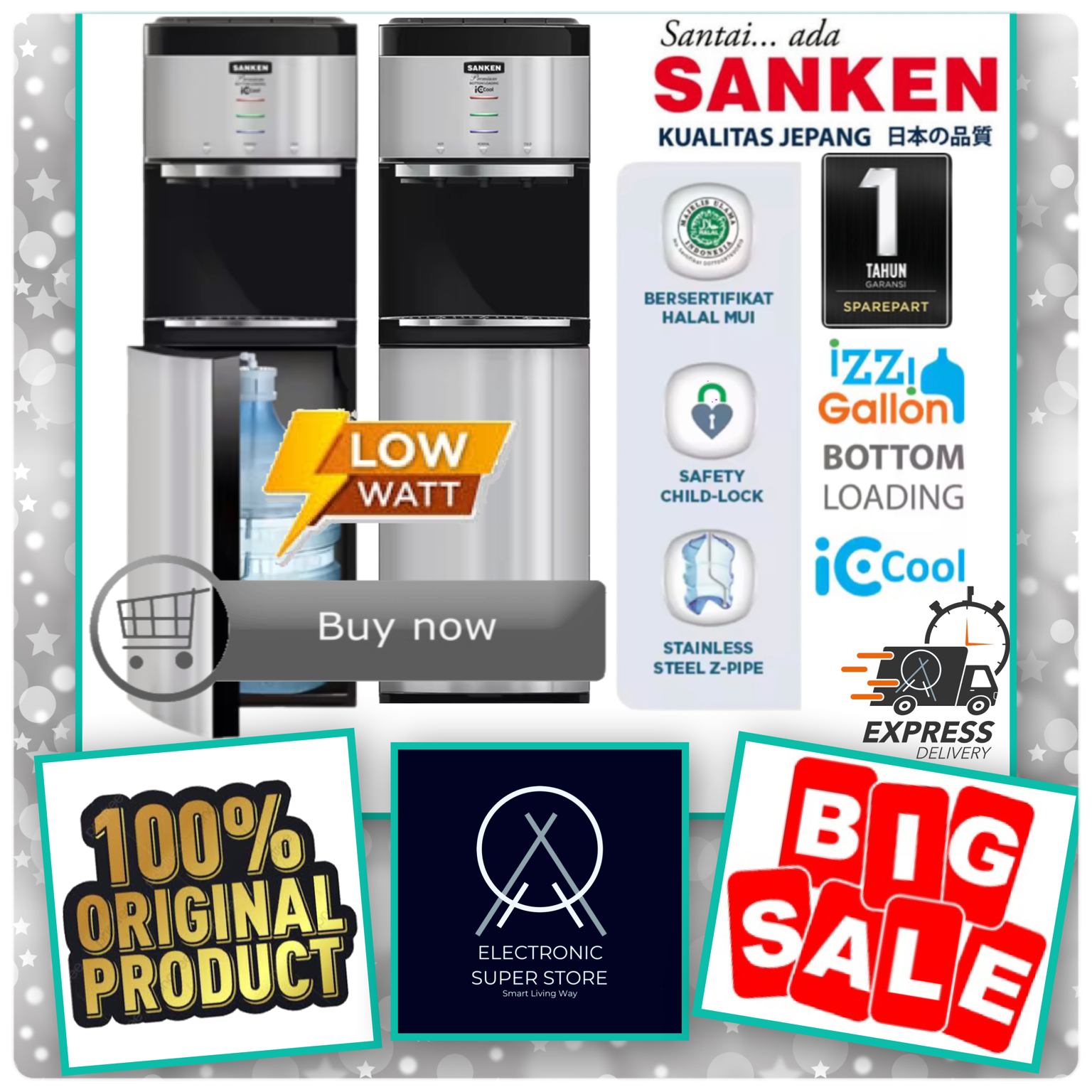 DISPENSER SANKEN HWD C558IC HWD-C558IC 558IC SUPER COOLING LOW WATT WATER DISPENSER SANKEN GALON BAWAH BOTTOM LOADING WA