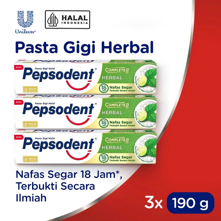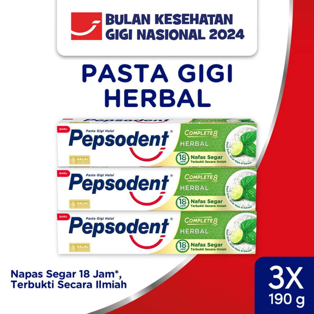 Pepsodent Action 123 PASTA GIGI Herbal Nature Essentials Mulut Adem, Nafas Segar 190G x3