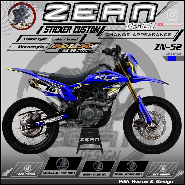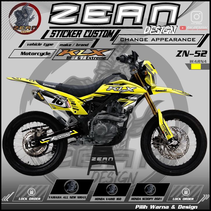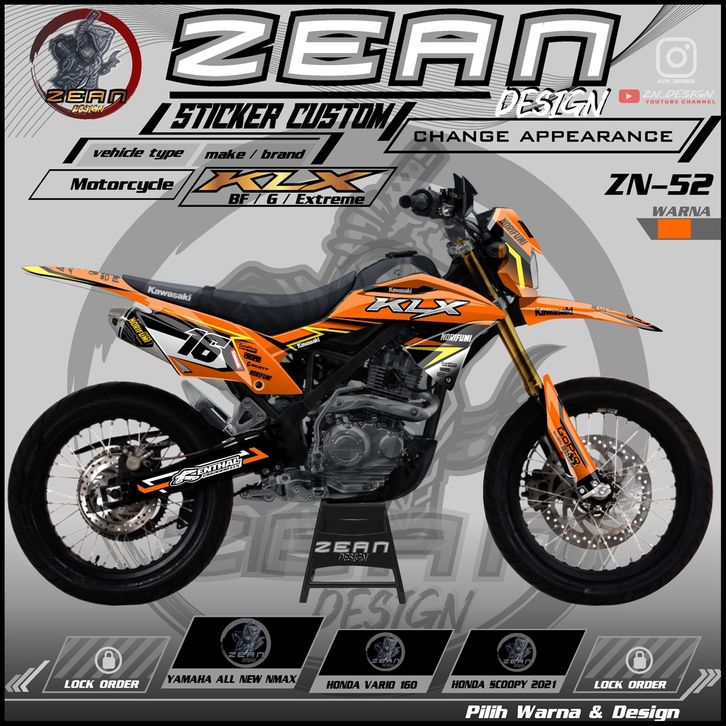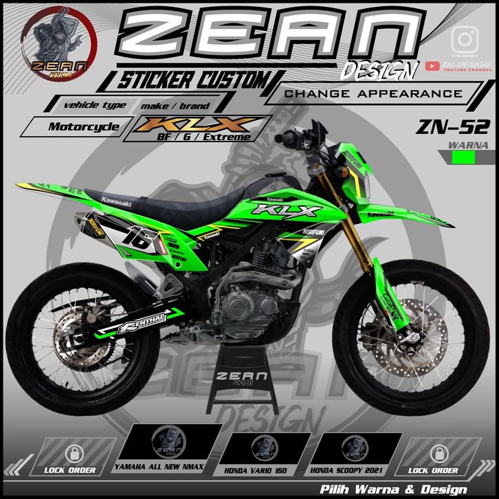 Stiker Motor Original Decal Sticker Motor Cross KLX 150 BF Fullbody - Dekal Stiker KLX BF / G /Extreme Motif Custom Tr