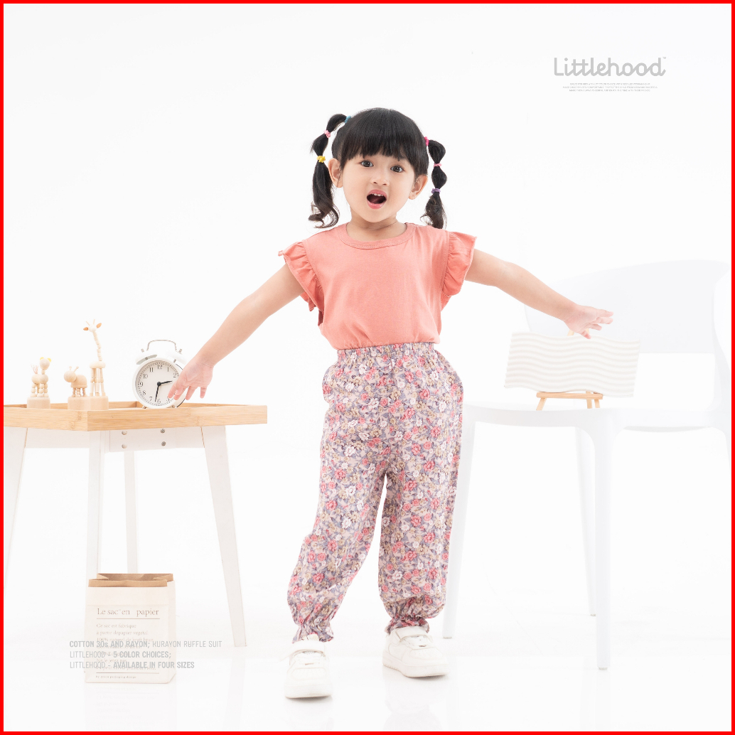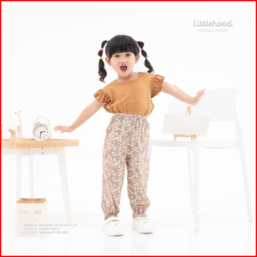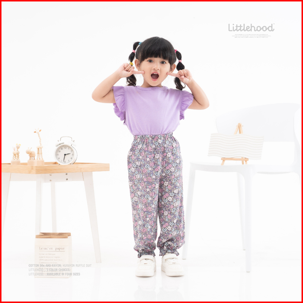 Setelan Anak Perempuan 1-8thn Cotton30s Setelan Celana Rayon Kaos Anak Ruffle Katun Lengan Kupu-kupu