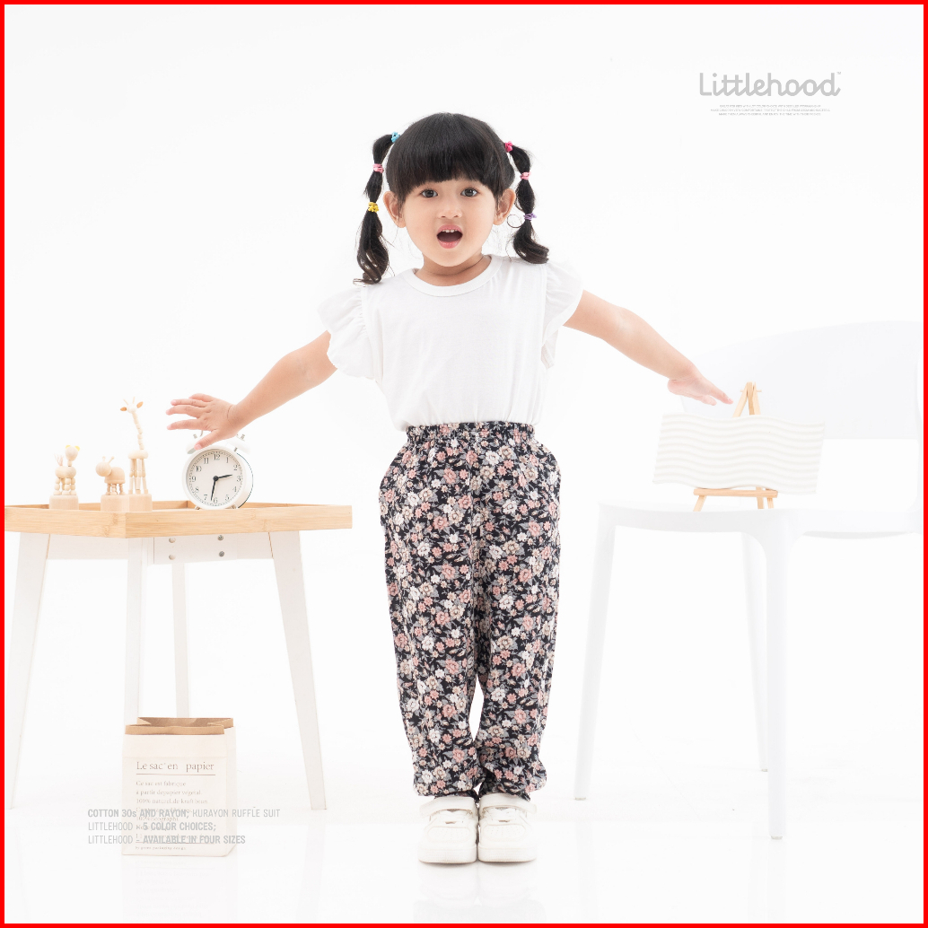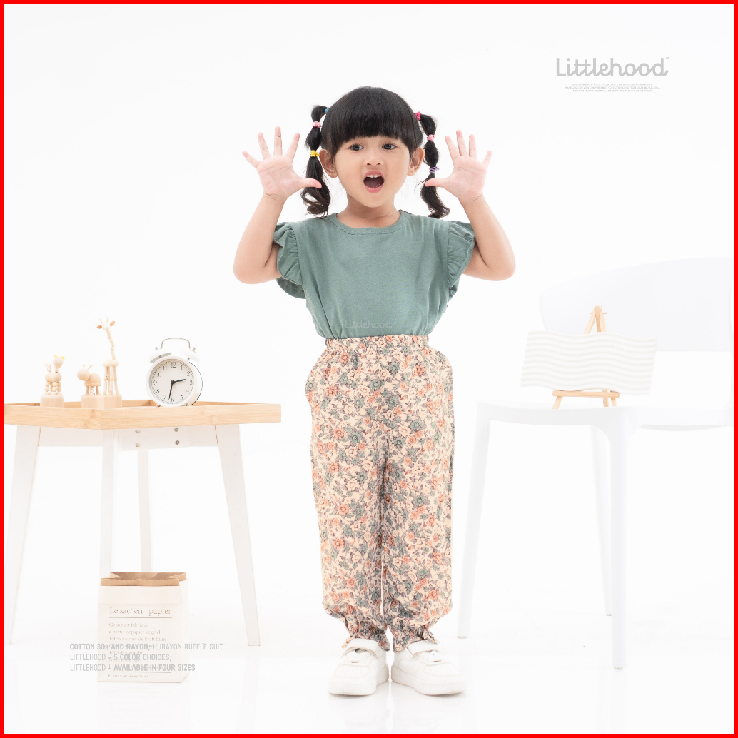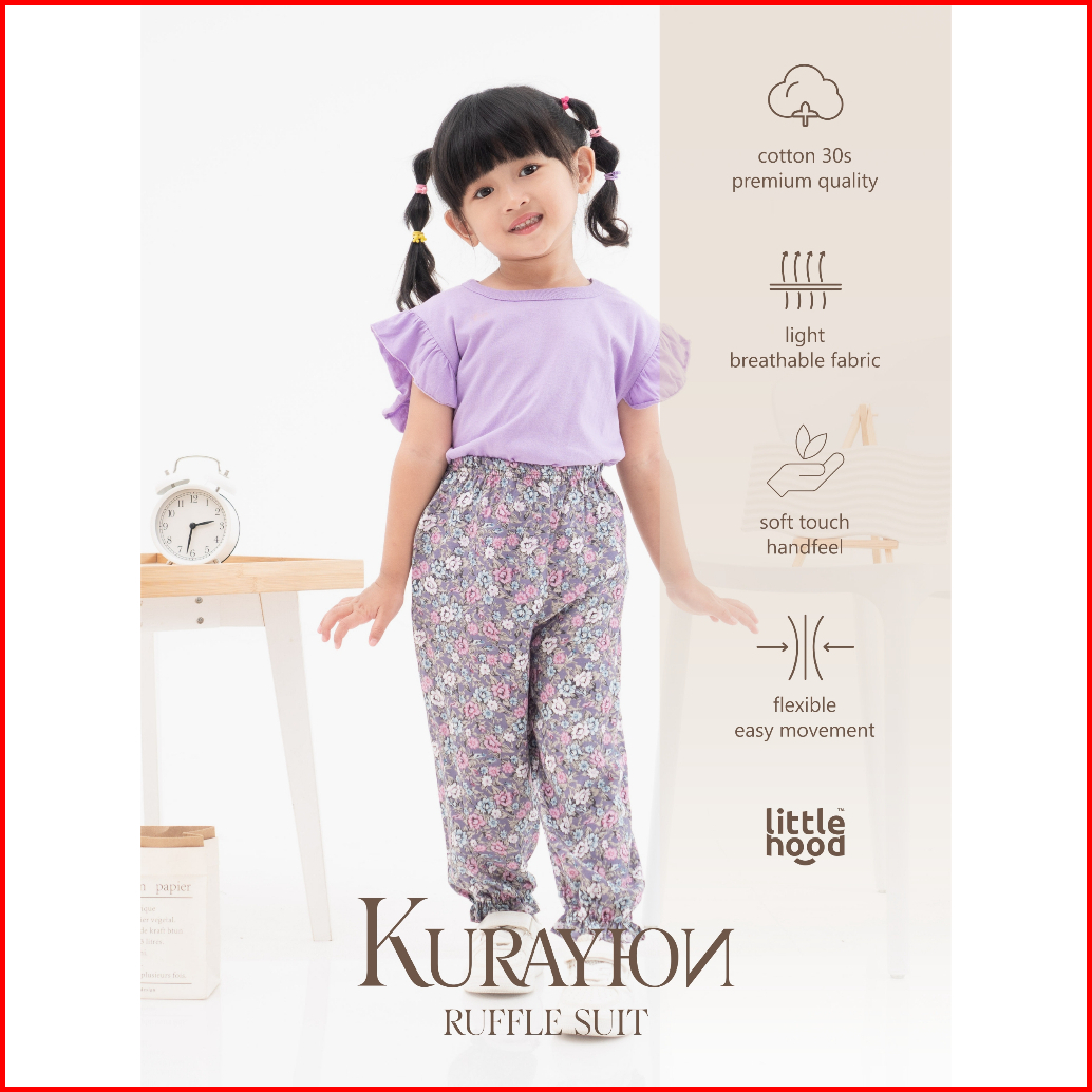 Setelan Anak Perempuan 1-8thn Cotton30s Setelan Celana Rayon Kaos Anak Ruffle Katun Lengan Kupu-kupu
