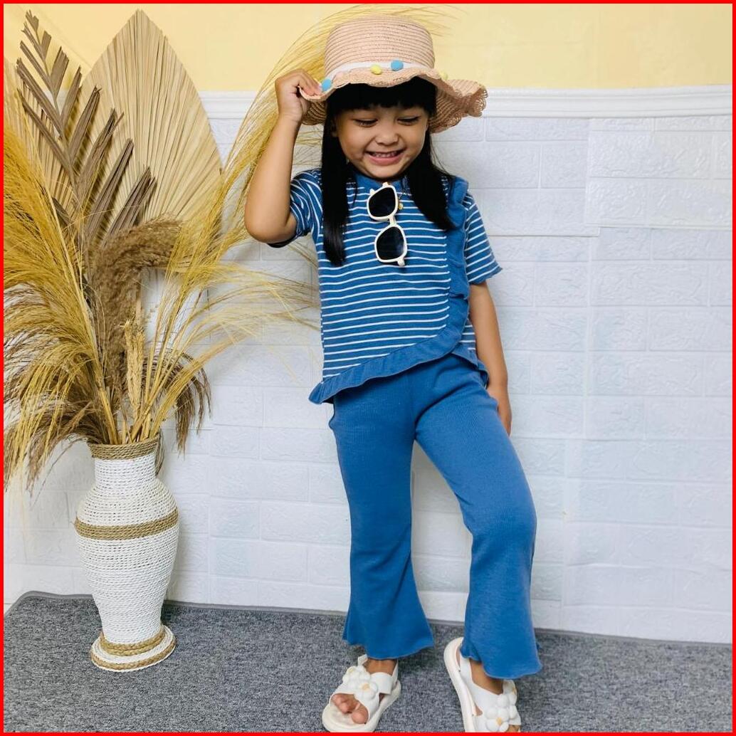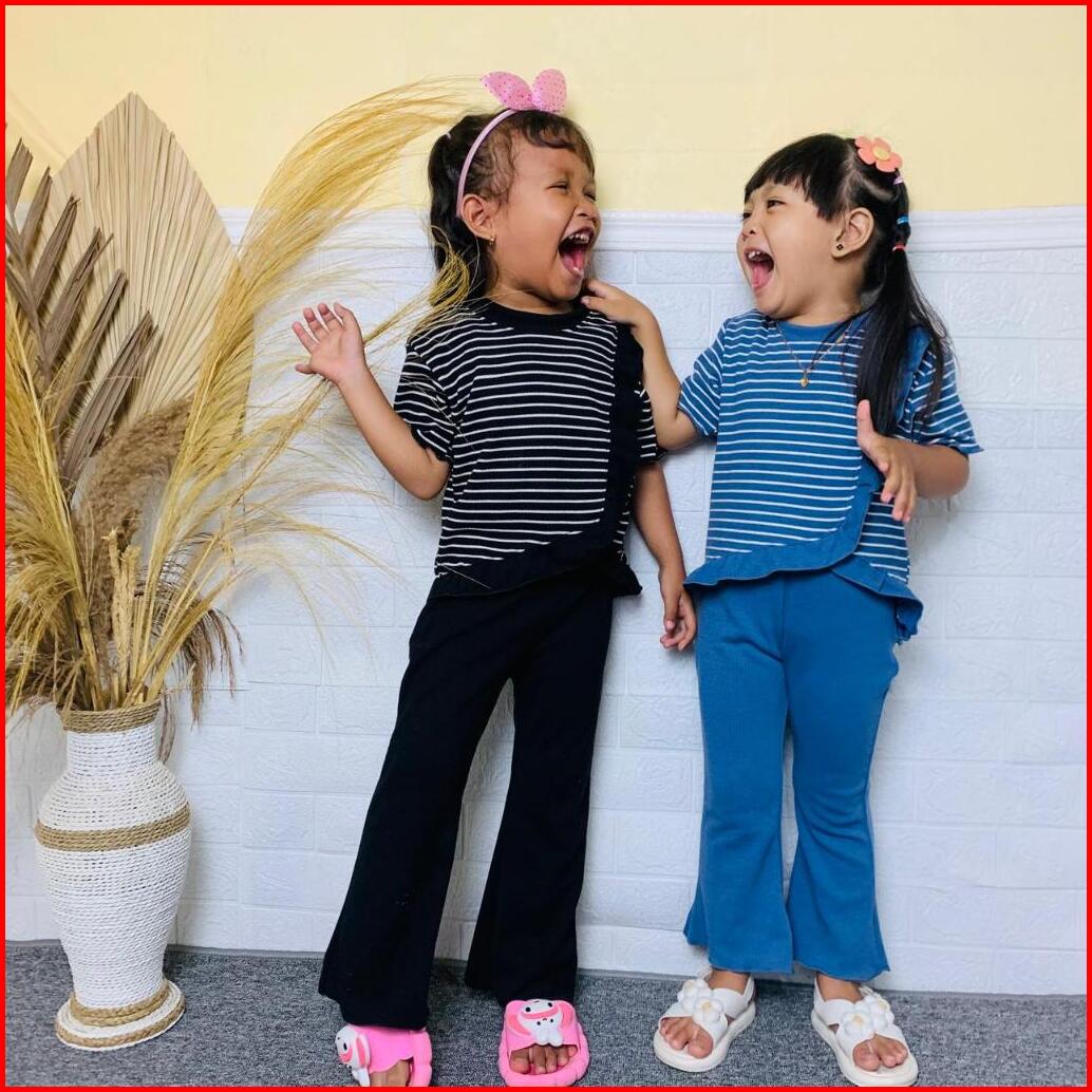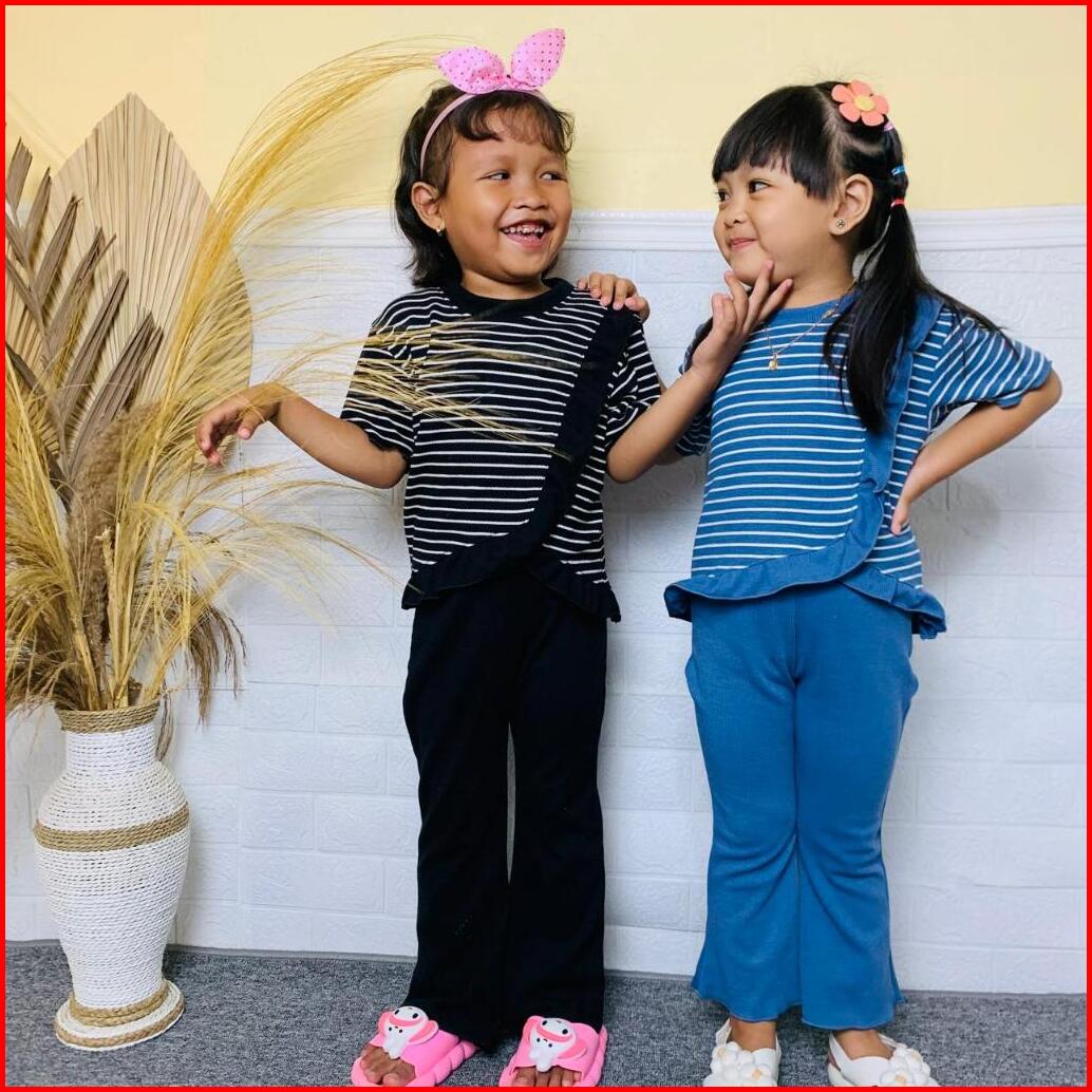 Setelan Anak Perempuan Viral Yura Stripe Salur Bahan Snow White Knit 1-10 Tahun