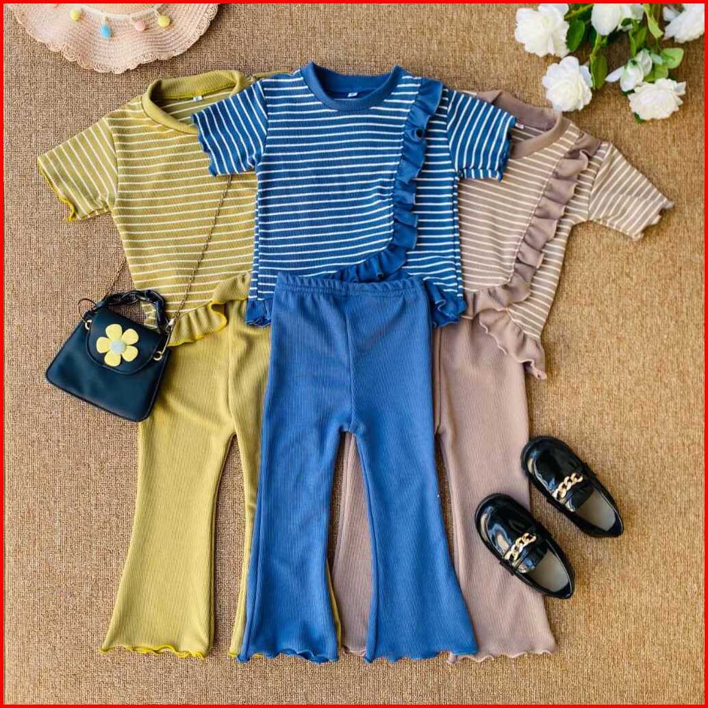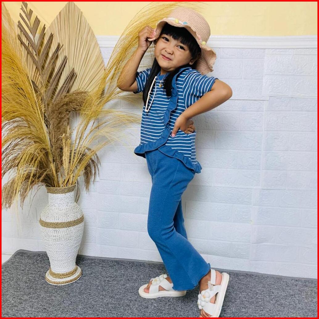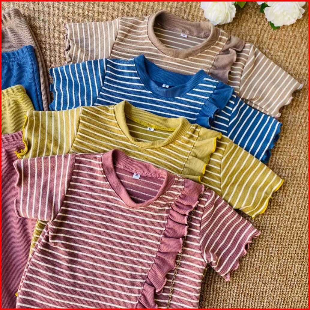 Setelan Anak Perempuan Viral Yura Stripe Salur Bahan Snow White Knit 1-10 Tahun