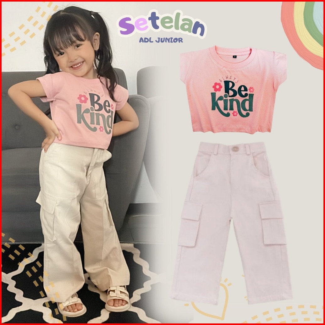 Adl Junior Setelan Croptop Celana Cargop Anak Dilara Kaos Anak Perempuan Baju Crop Top Anak Perempuan 6bln - 8thn