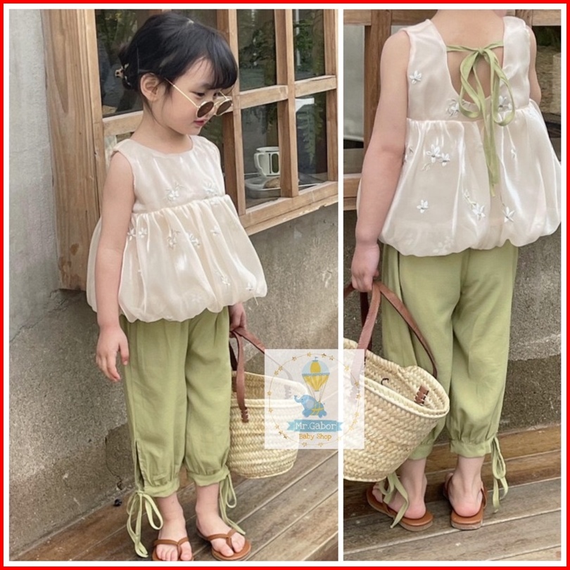Mr.gabor Setelan Bordir Tanpa Lengan Dan Celana Panjang Anak Perempuan Mina Set