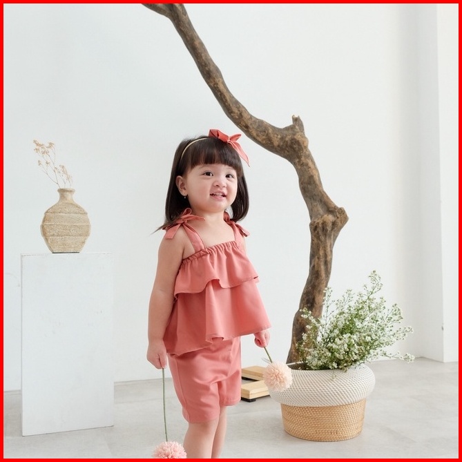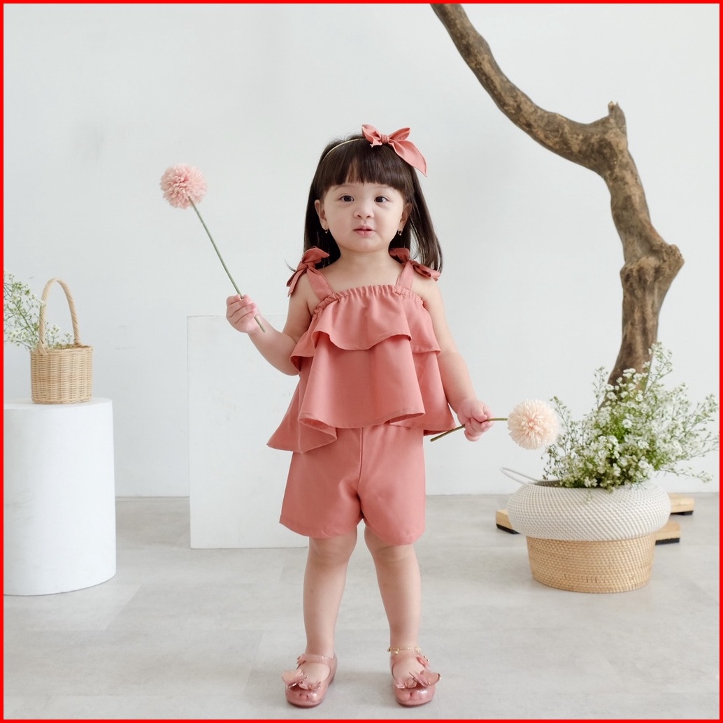 Moonjoy Poppy Set - Setelan One Set Baju Anak Perempuan Ruffle Pita