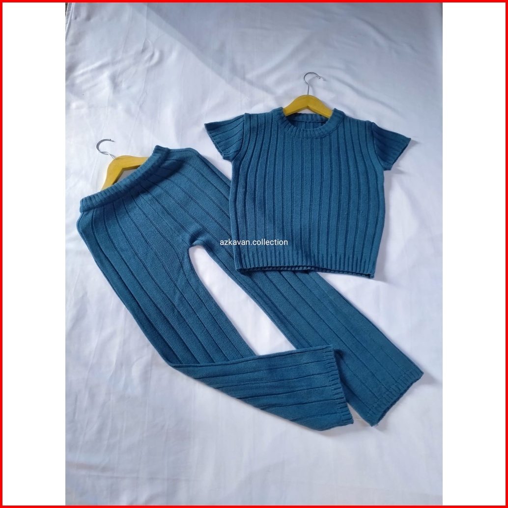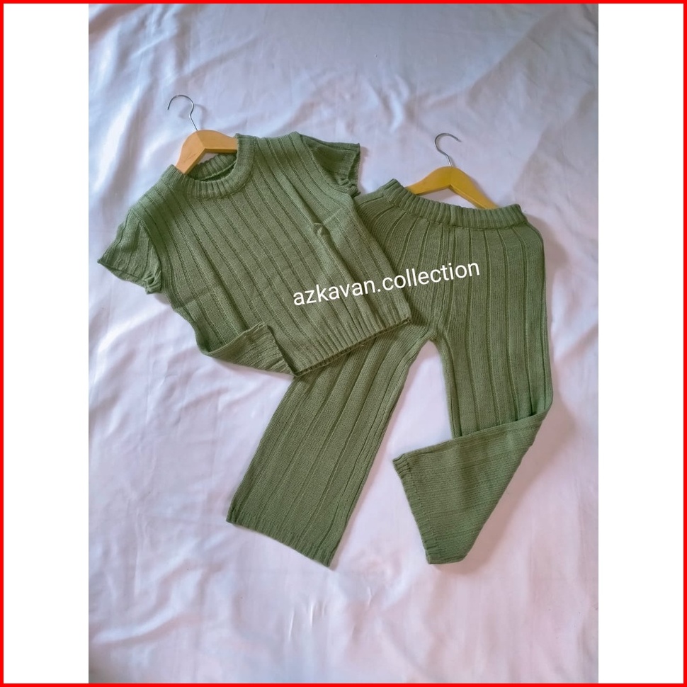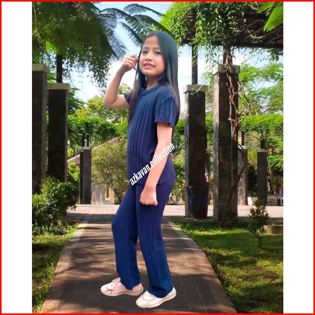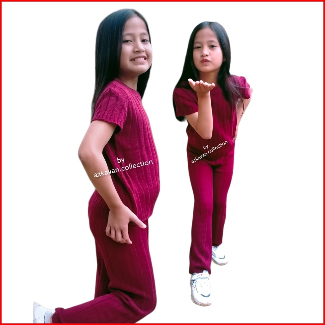 One Set Blouse Salur Tangan Pendek Vs Celana Kulot Rajut Anak Umur 4-7-8-9-10-12 Tahun Pakaian Anak Perempuan