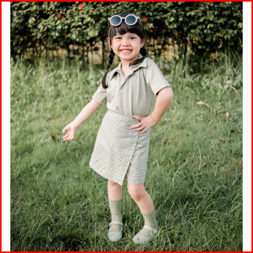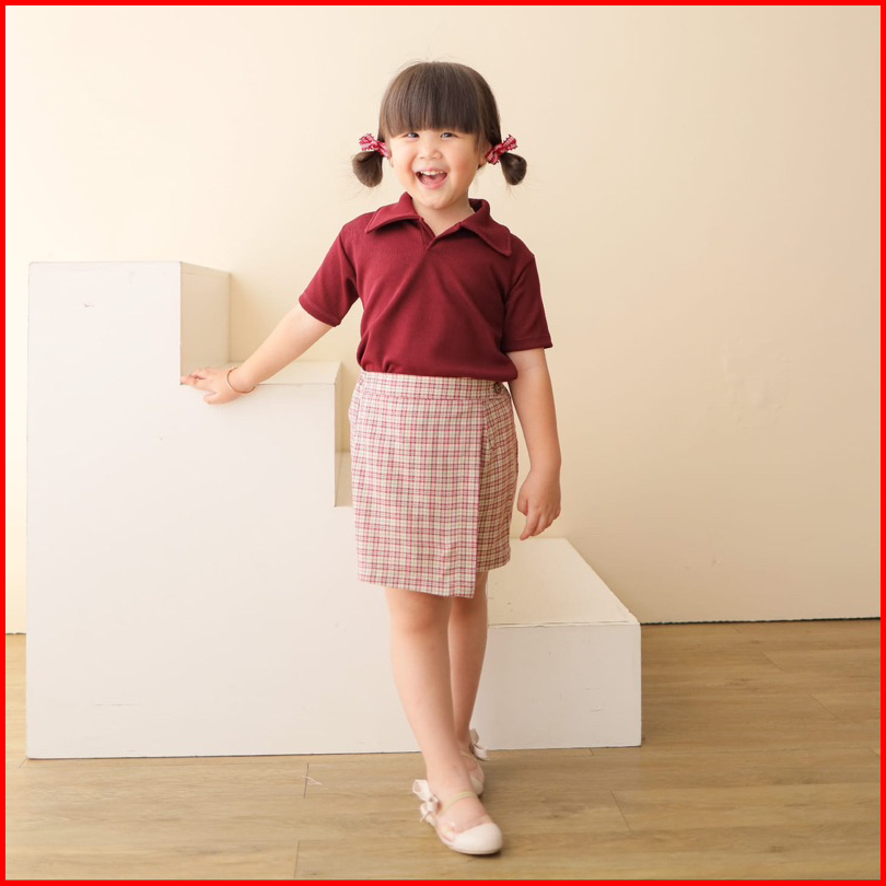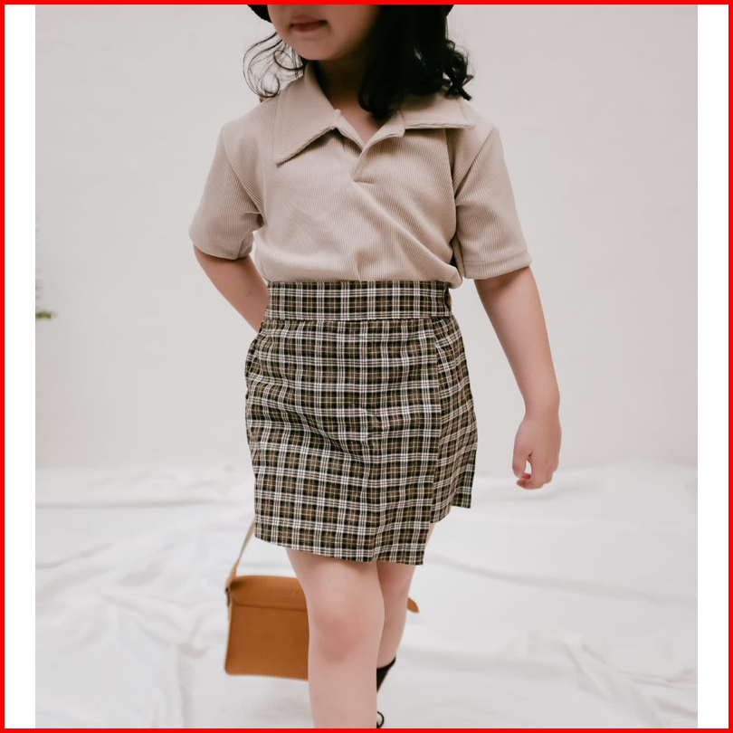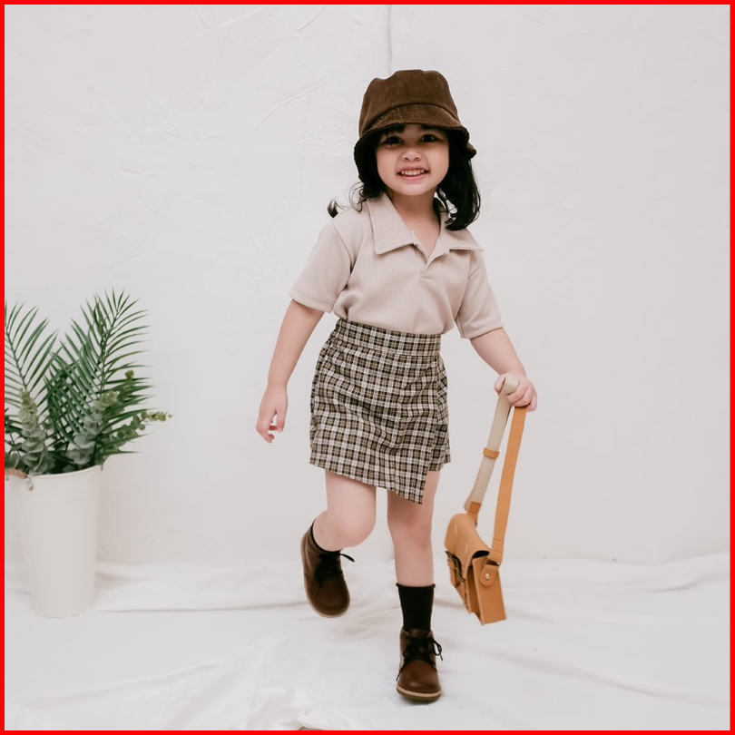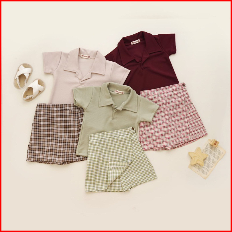 Tartan Skort Set Anak 1-5 Tahun Setelan Anak Pendek Celana Rok Oneset Skort Anak Setelan Polo Anak Cewek Setelan Anak At