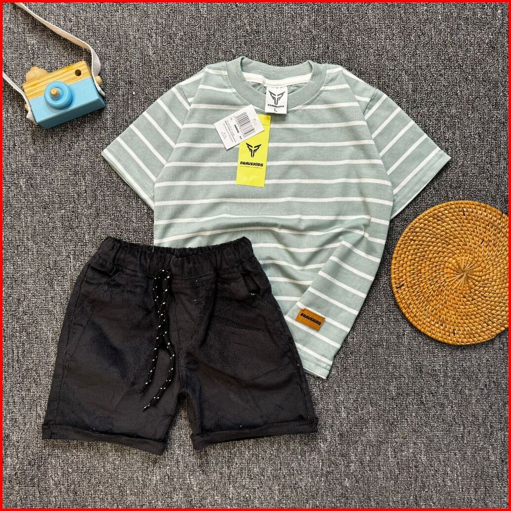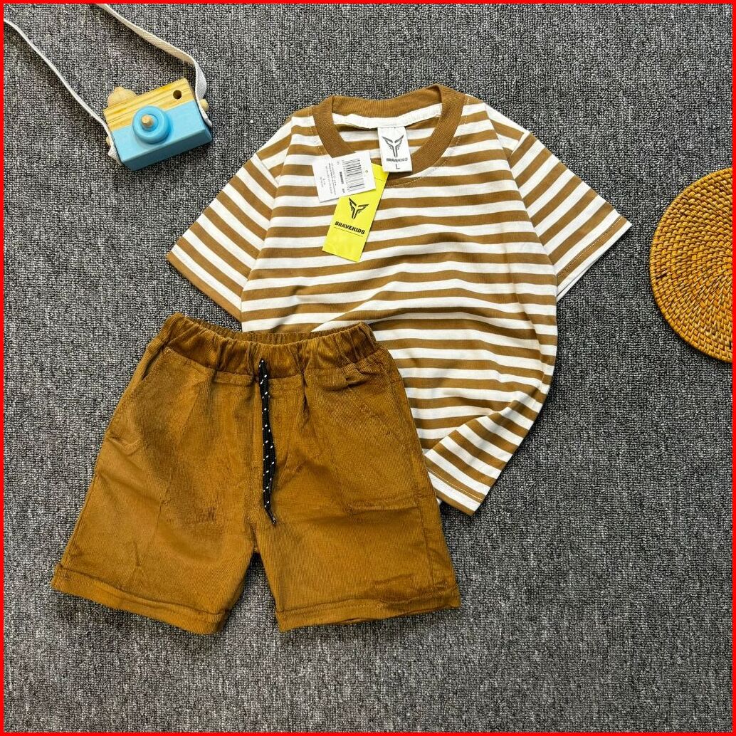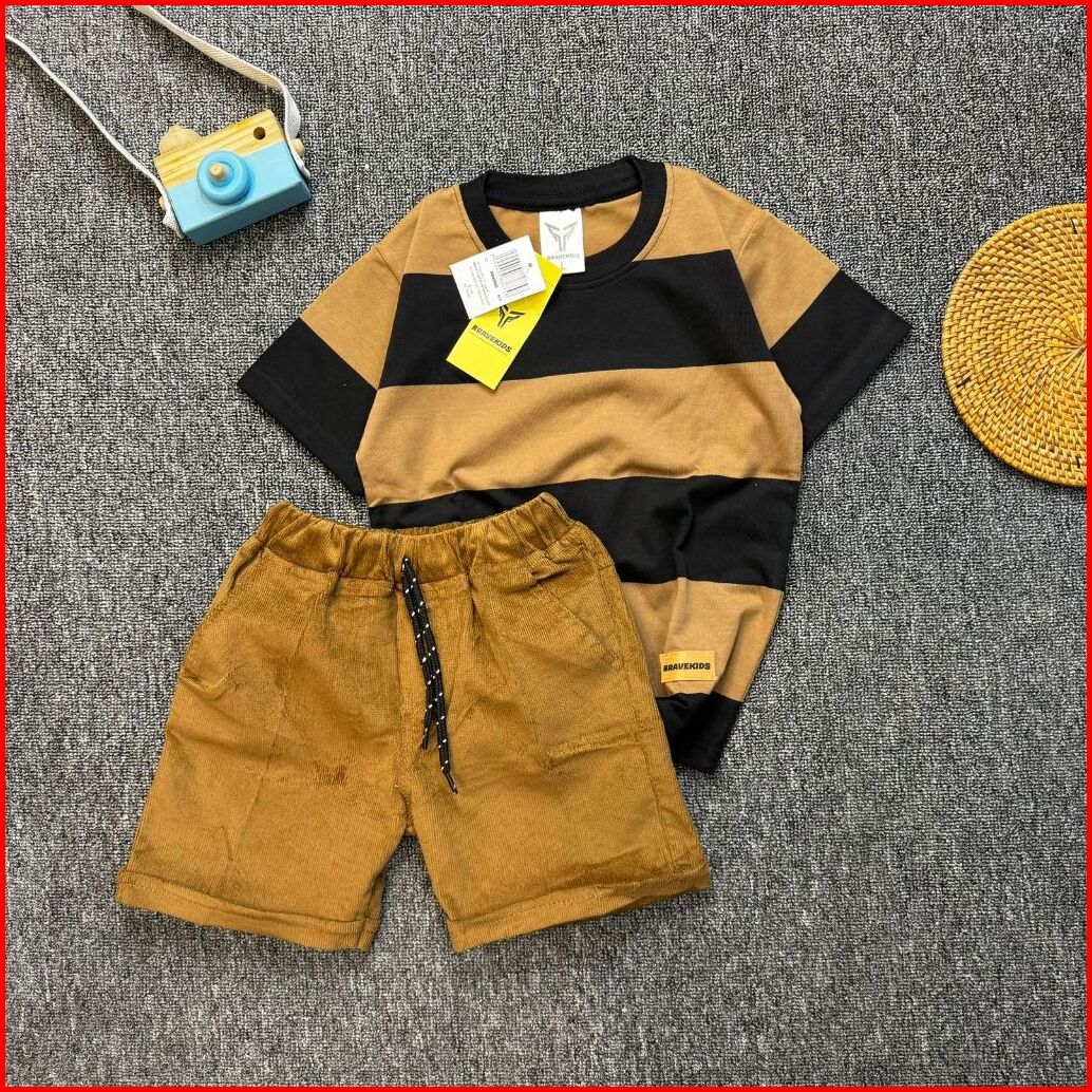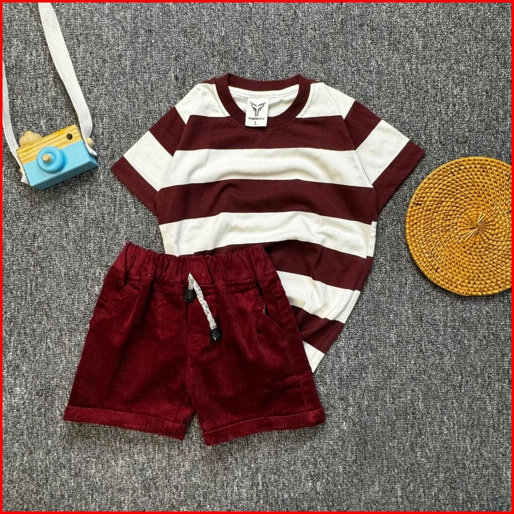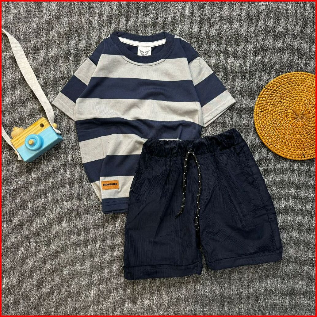 Bravekids - Broadstripe Setelan Anak Kaos Salur Dan Celana Corduroy Fashion