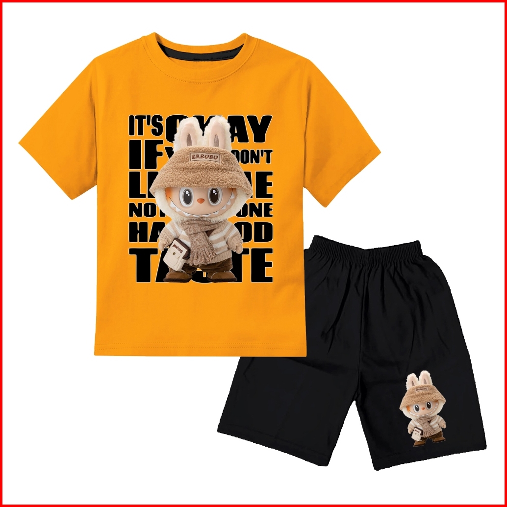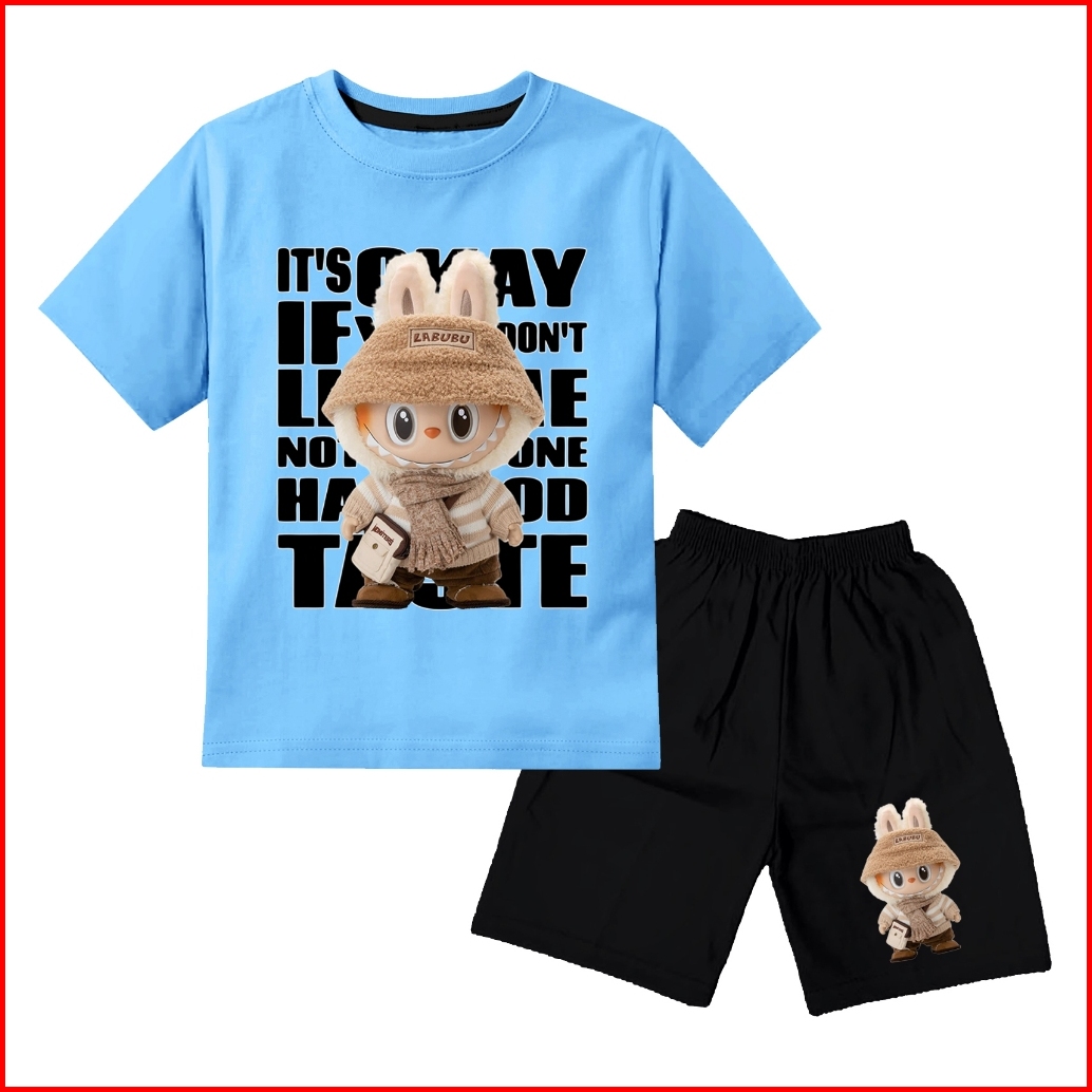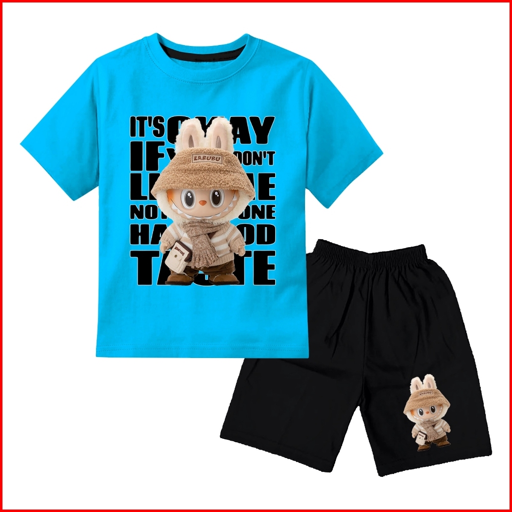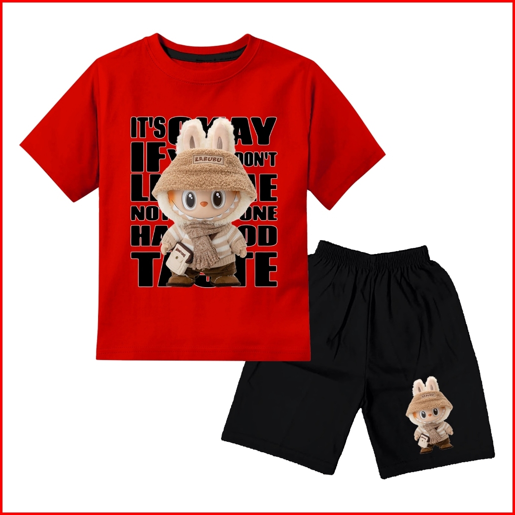 Baju Set Stelan Setelan Kaos Anak Laki Laki Murah Motif Labubu Viral Pop Mart The Monster Umur 1-10 Tahun Bahan Katun Pr