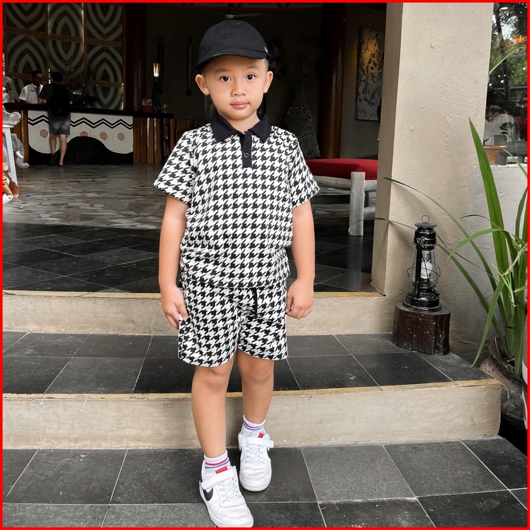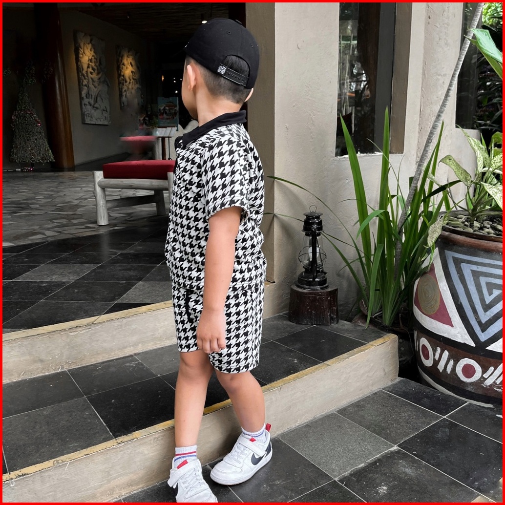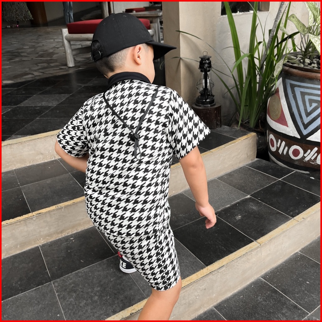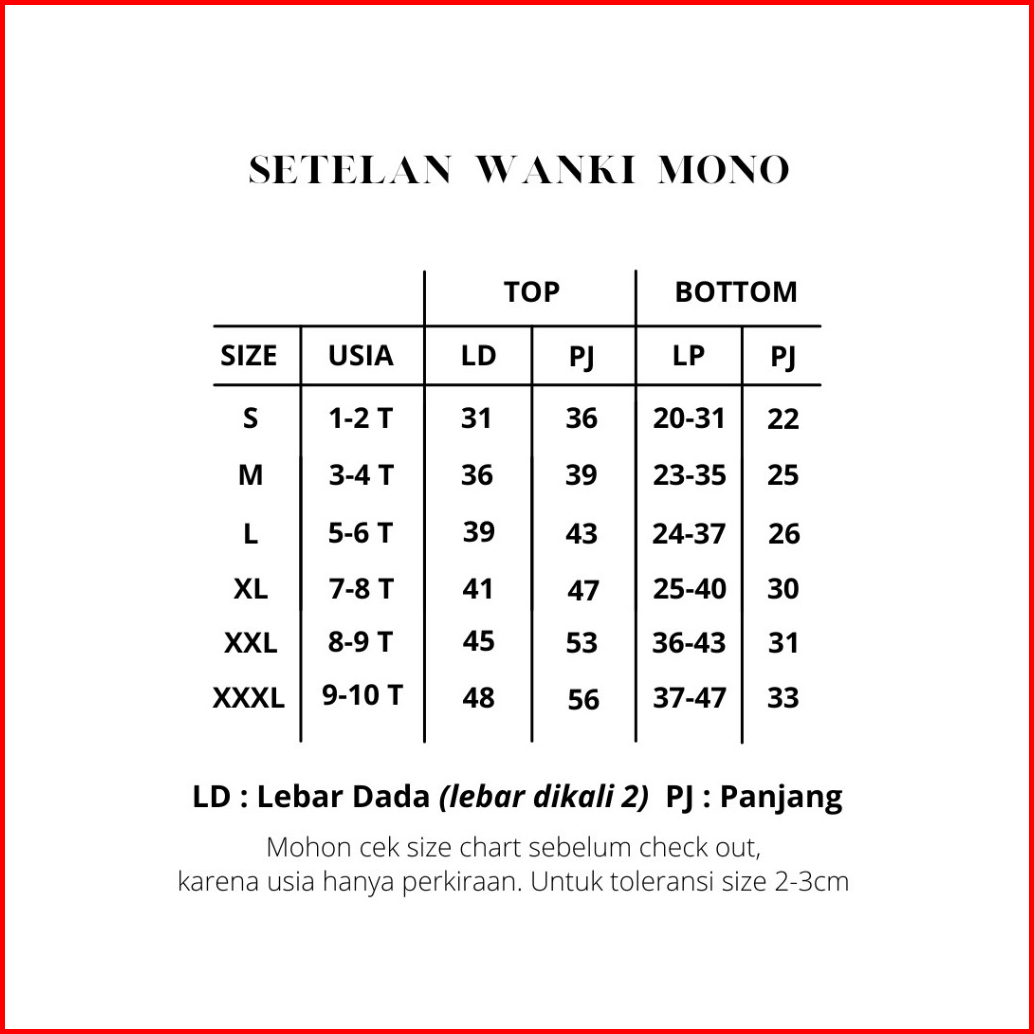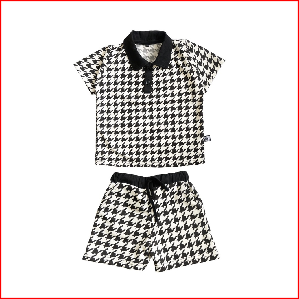 Krucilkuu-setelan Anak Wanki Mono Oversize Hitam Putih Kerah Umur 1-10 Tahun