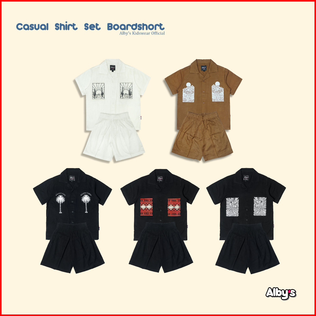Albys Kidswear - Kemeja Motif - Casual Shirt Motif Boardshort - Setelan Anak Unisex - Rayon Twill