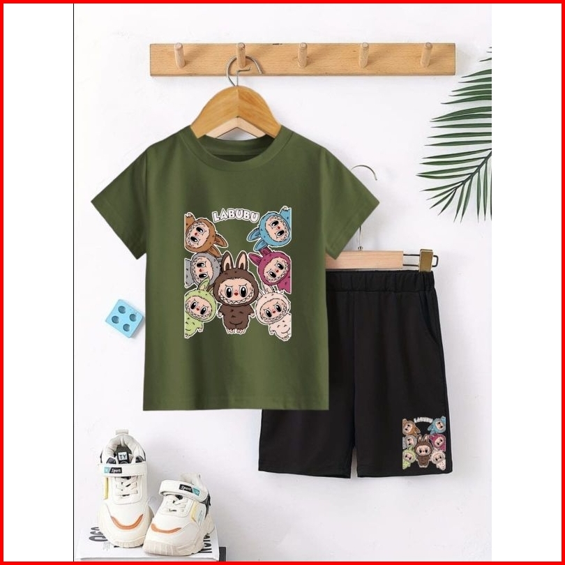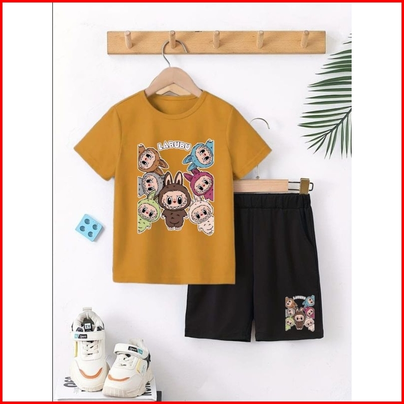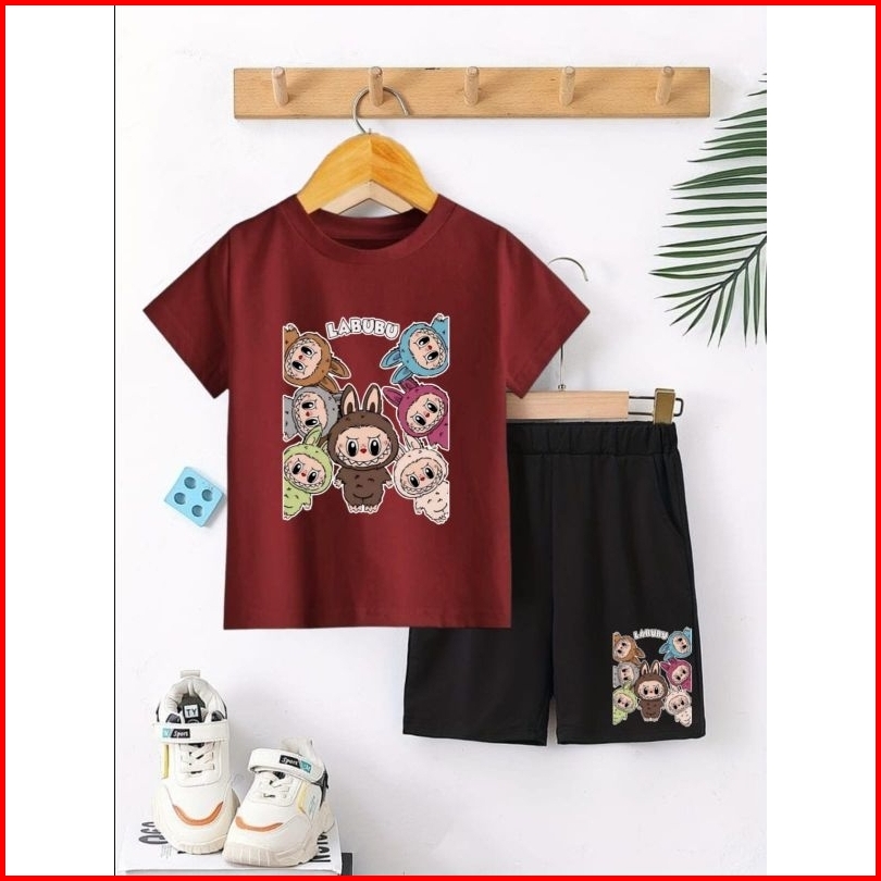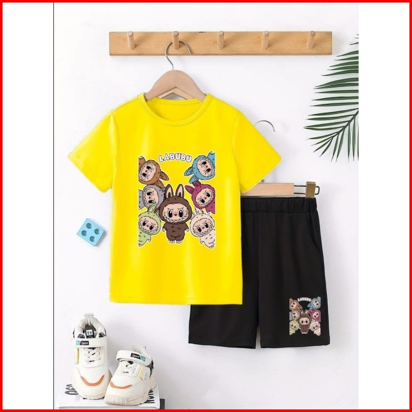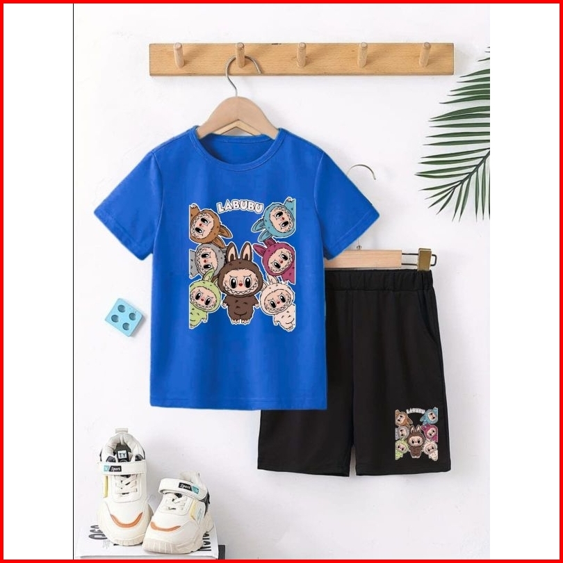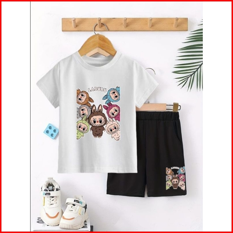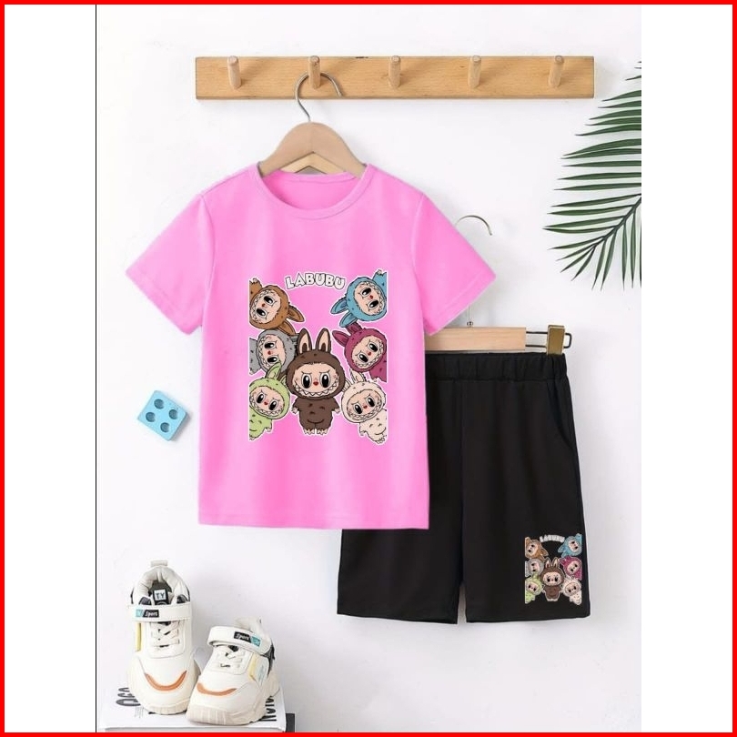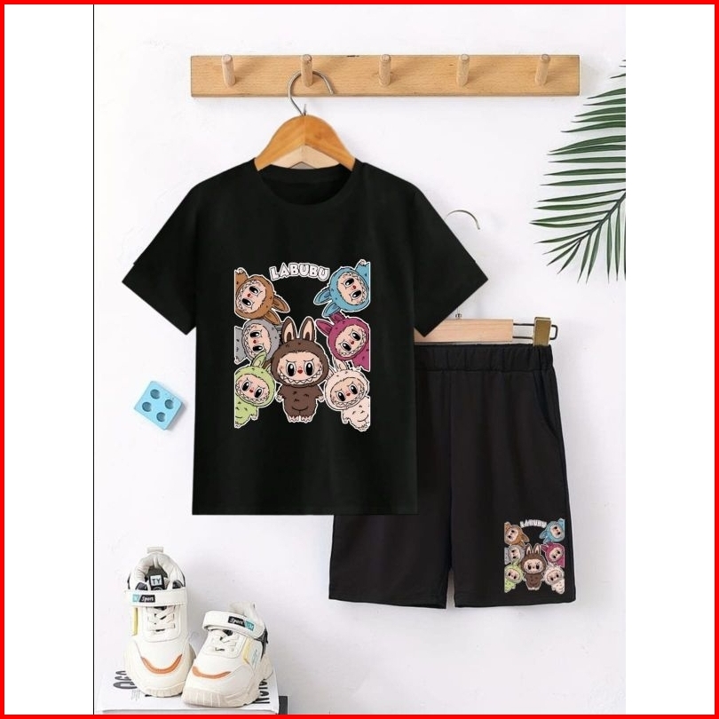 Setelan Anak Labubu Stelan Baju Celana Hitam Pendek Anak2