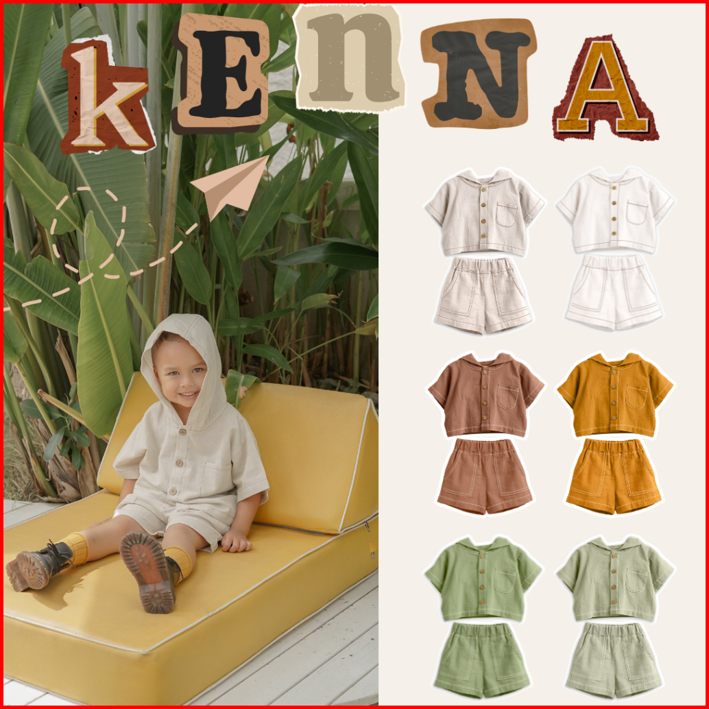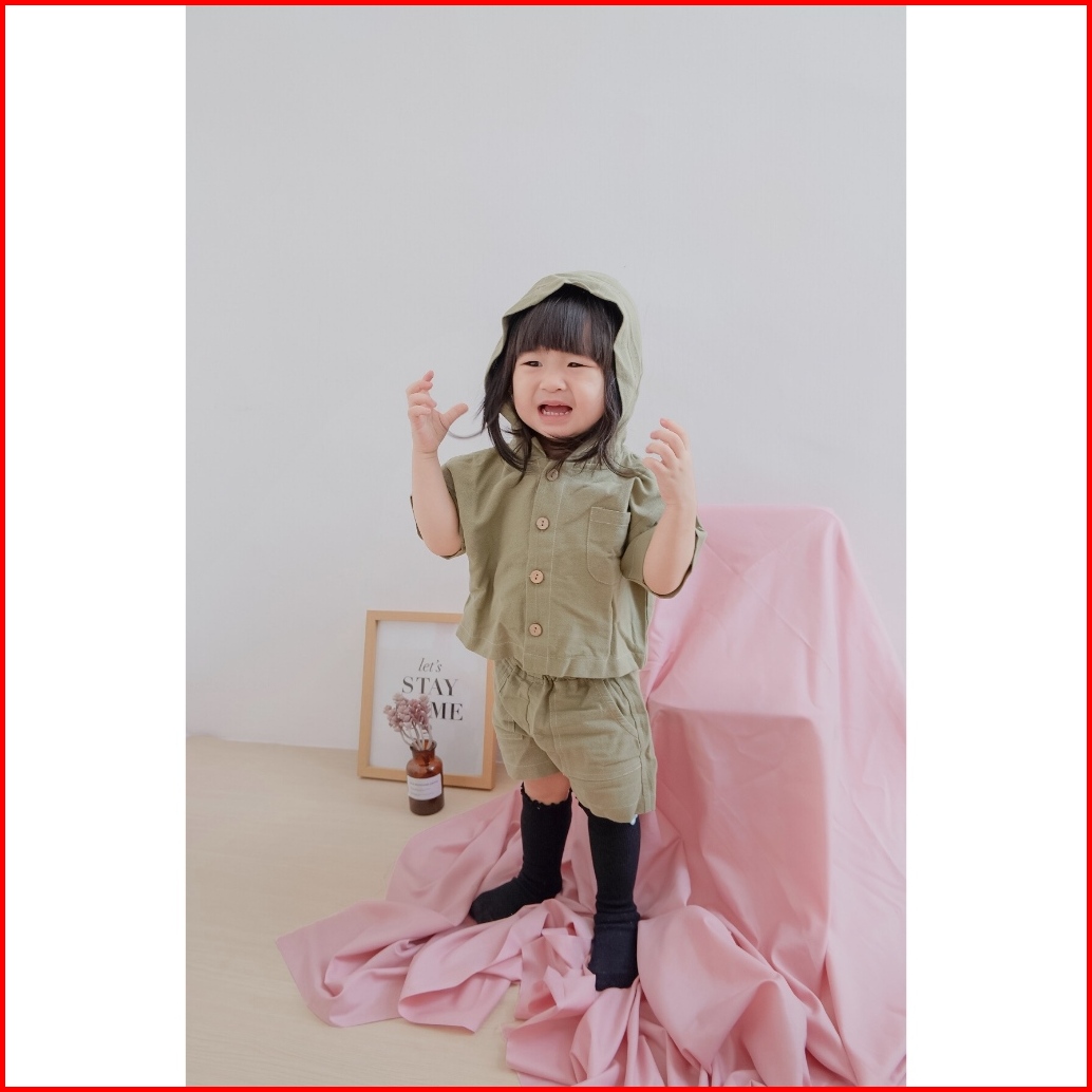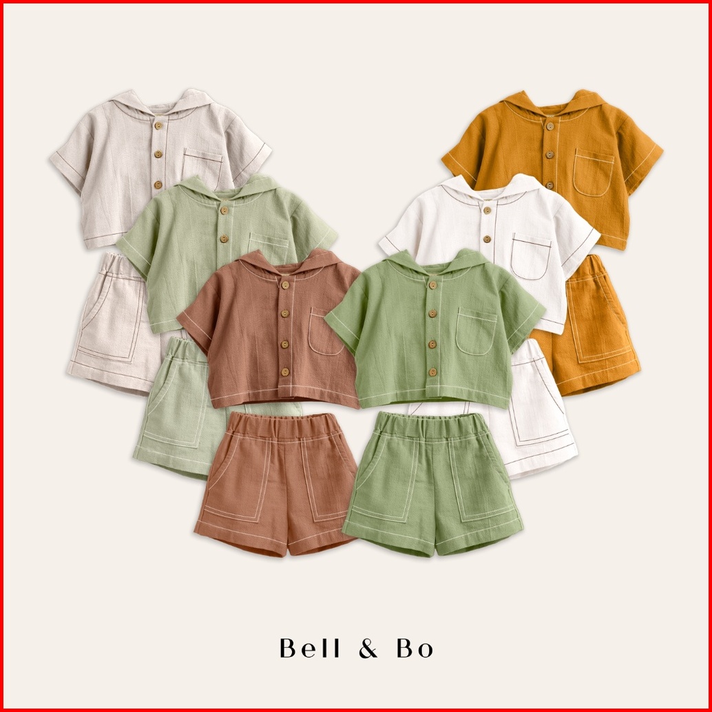 Bell Bo - Kenna Set Hoodie Linen Setelan Anak Laki-laki Dan Perempuan Size 1-4 Tahun