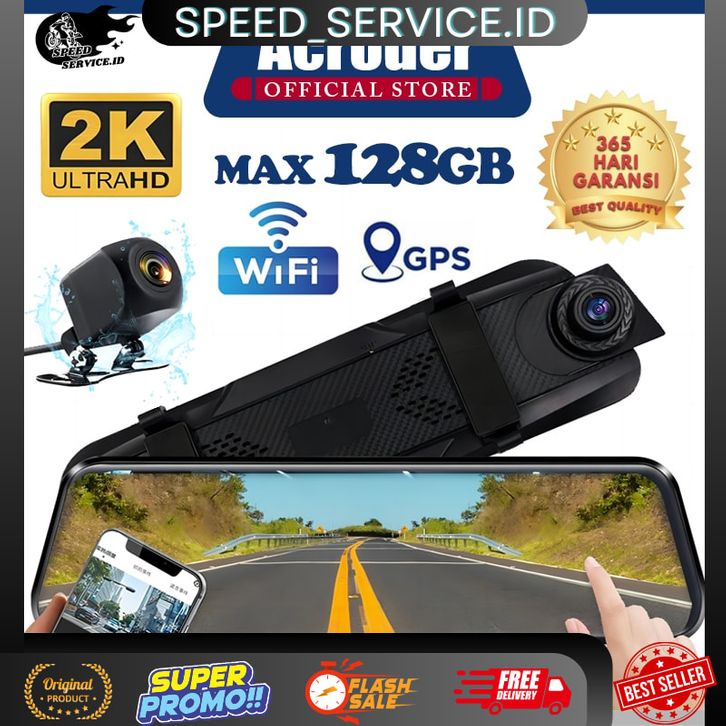 Acroder Dashcam Mobil WIFI GPS 10 inch 2K Layar Sentuh IPS Perekaman Loop 24 jam