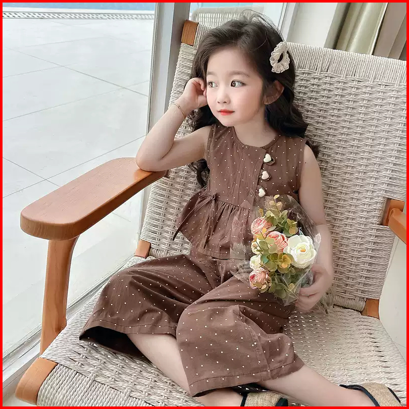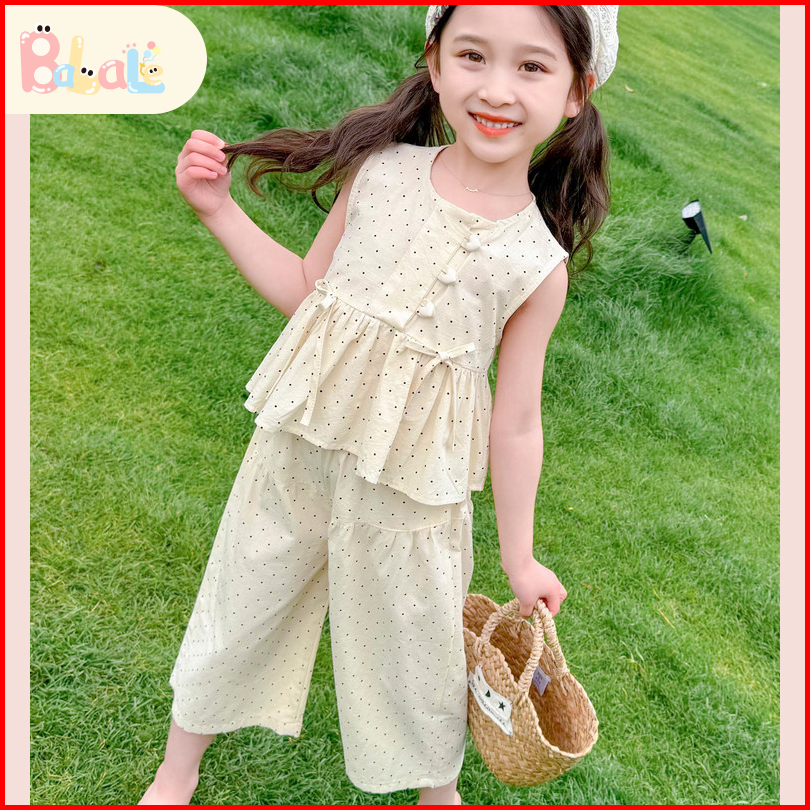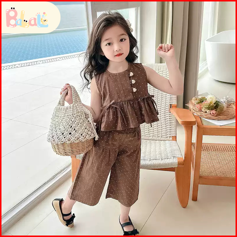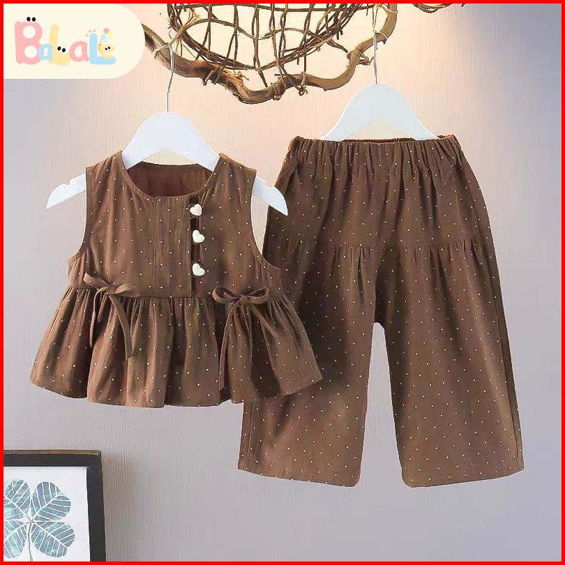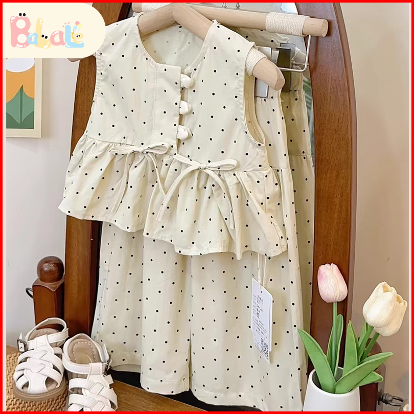 Balale Korean Style Setelan Anak Permpuan Katun Polkadot Nyaman Baju Bayi Girl Setelan Atasan
