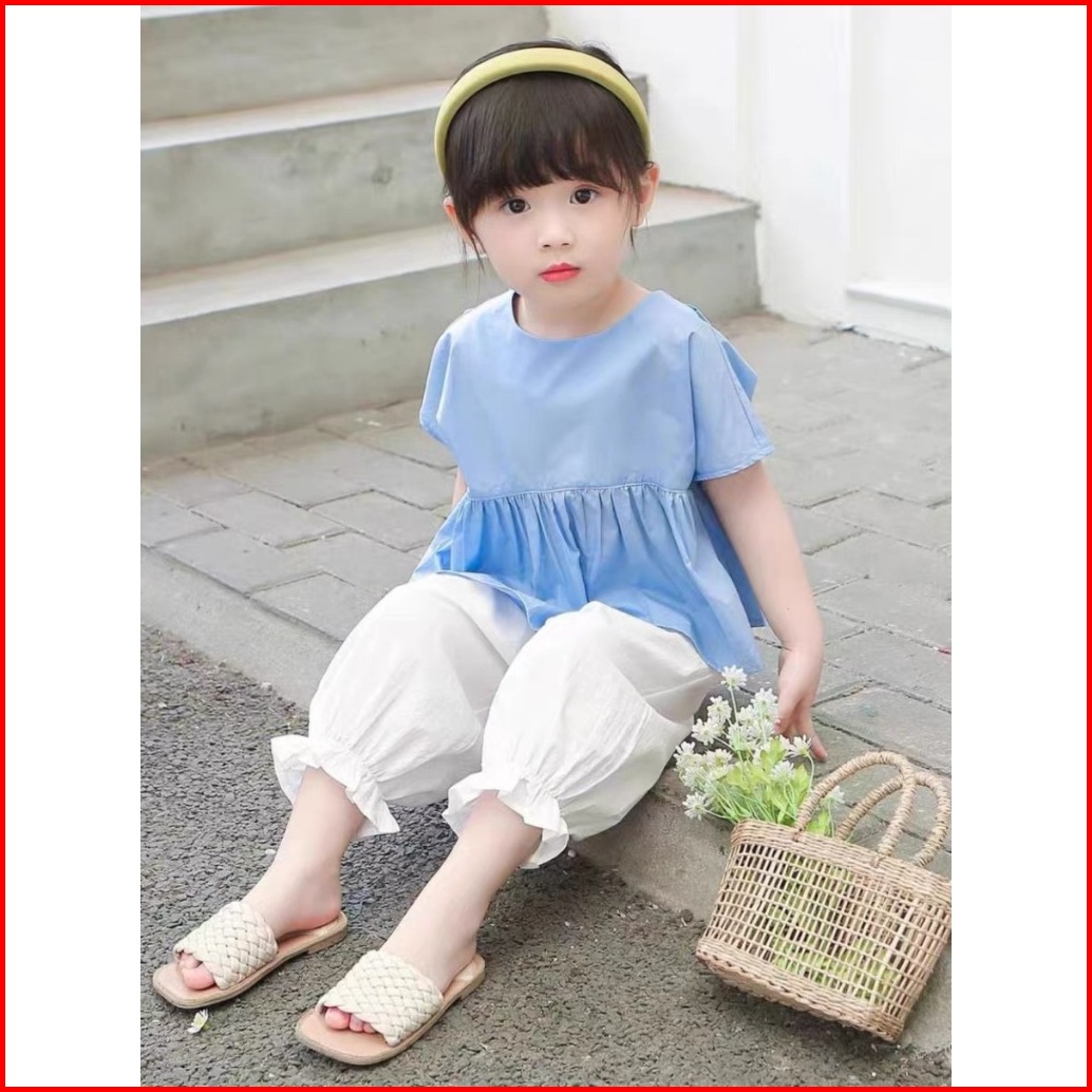 Terbaru Setelan Mains Atasan Lengan Pendek Celana Panjang Baju Anak Perempuan Style Baju Katun Anak Perempua Set