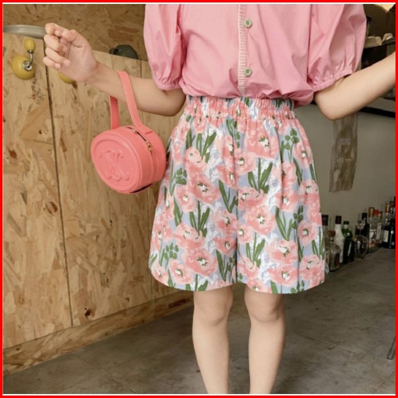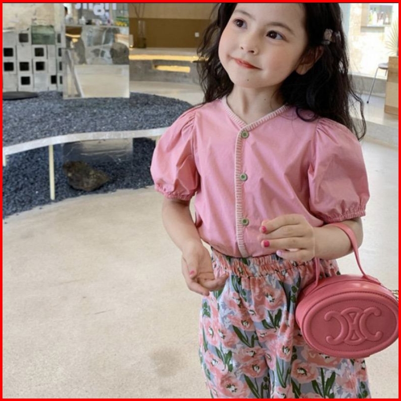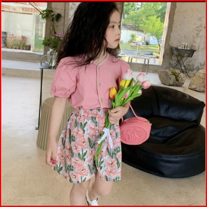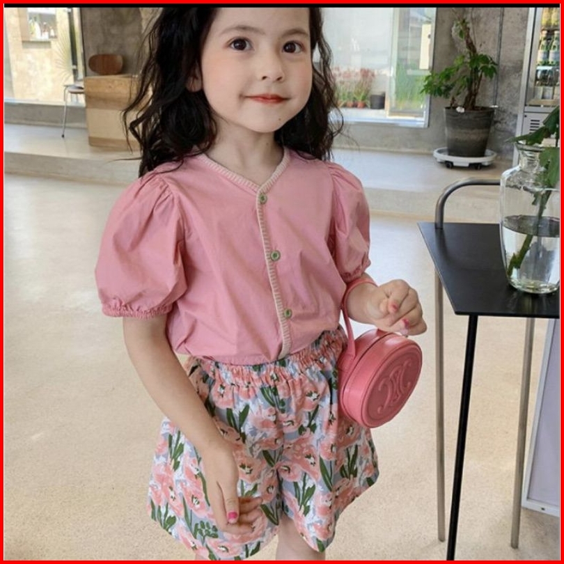 Setelan Anak Perempuan Blouse Kancing Dan Celana Pendek Bunga Korea Flower Pink Rena Set