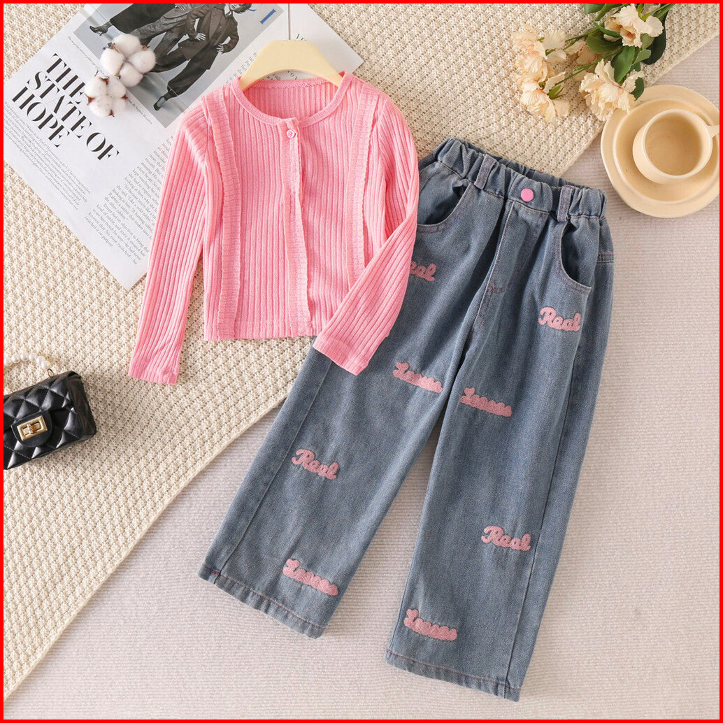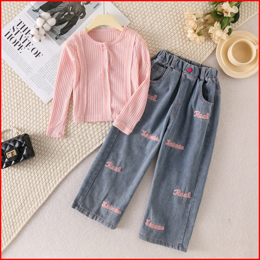 363713 - Baju Setelan Atasan Rajut Celana Jeans Panjang Fashion Anak Cewek - Motif Letter Knit