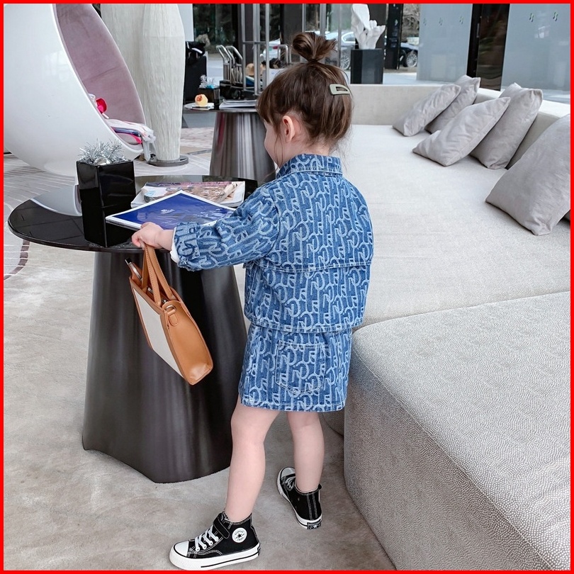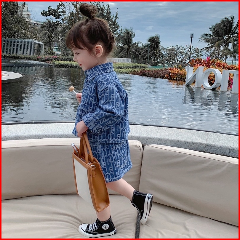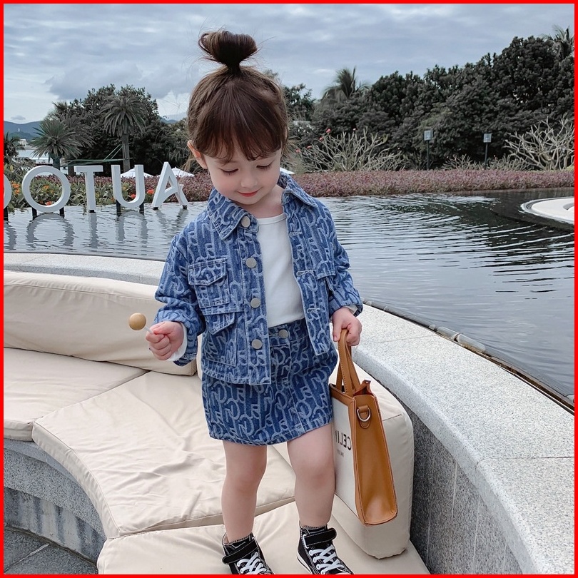 Eobaby L33 Jeans Set Anak Perempuan Biru Premium Setelan Rok Jaket Korean Style